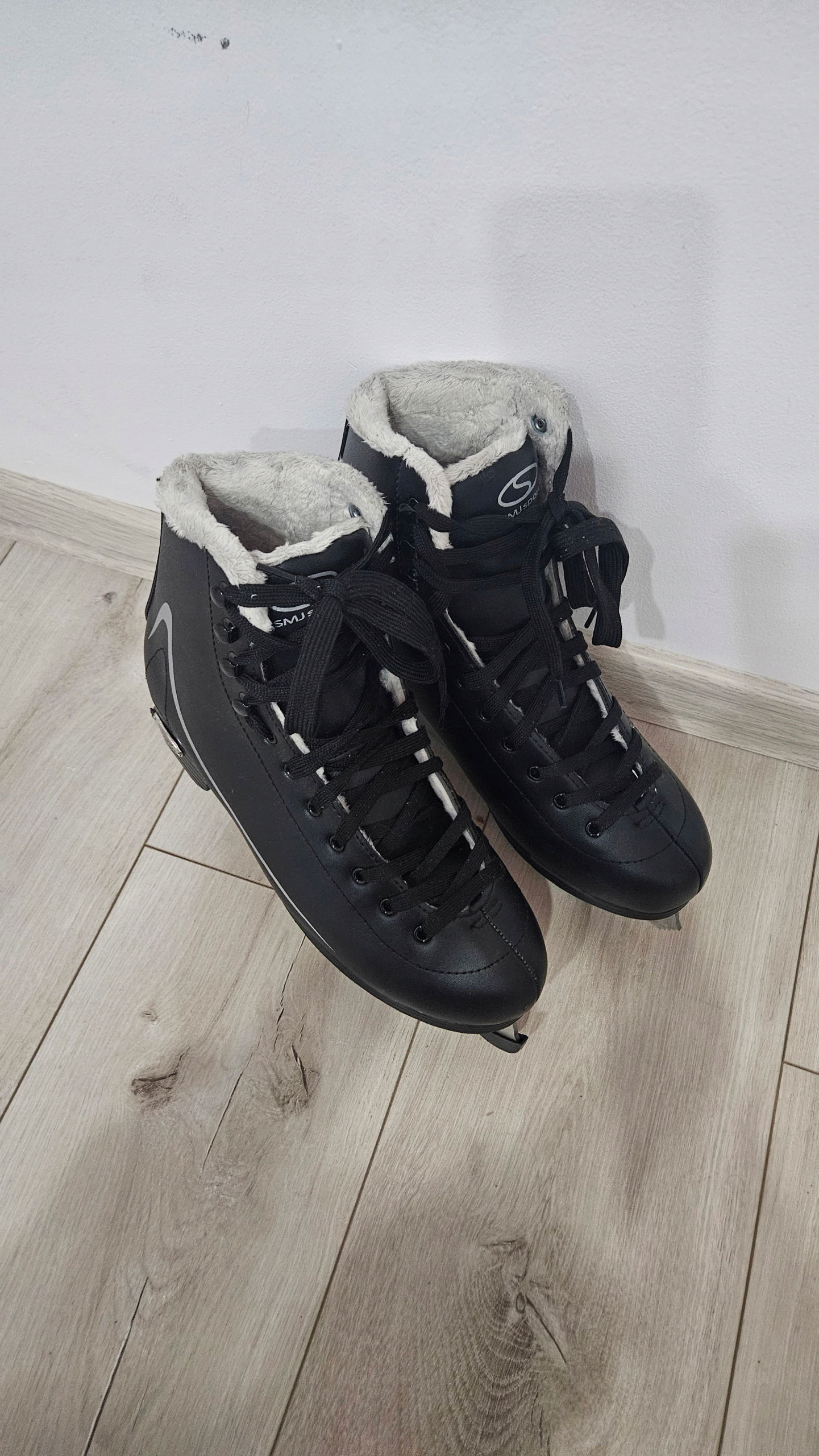 Łyżwy figurowe firmy SMJ SPORT model F-SMJ-B CALGARY wykonane z wysokogatunkowych materiałów przy zachowaniu niezwykłej dbałości o jakość wykonania. Jest to klasyczna figurówka. Ergonomiczny krój zapewnia stopie stabilność, wygodę i komfort jazdy. Łyżwy przeznaczone do jazdy rekreacyjnej.