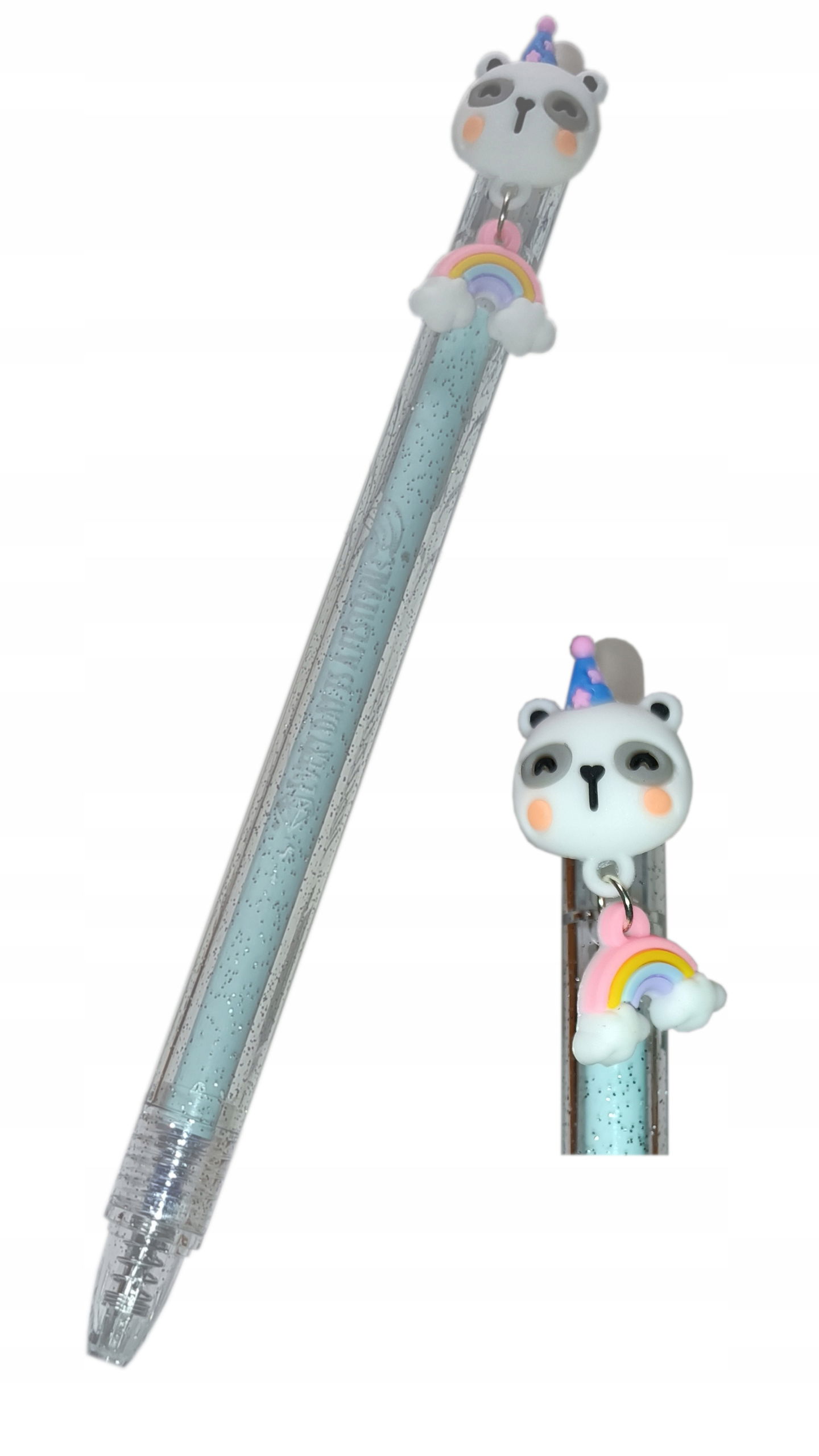 Długopis ścieralny klikany posiada niebieski tusz usuwany za pomocą gumki umieszczonej na końcu długopisu.