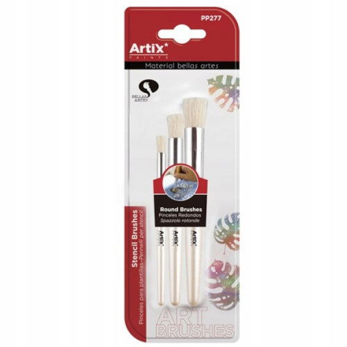 Pędzel wzornikowy z białego naturalnego włosia, krótka drewniana rączka i okrągła metalowa skuwka. Długość: 17,5 cm. Idealnie sprawdza się w technice tworzenia szablonów na szablonach (szablon).Okrągły korpus i pędzelek umożliwiający łatwe wypełnianie szablonów. Blister składający się z 3 sztuk w różnych rozmiarach nr 5/16, nr 1/2 i nr 3/4.