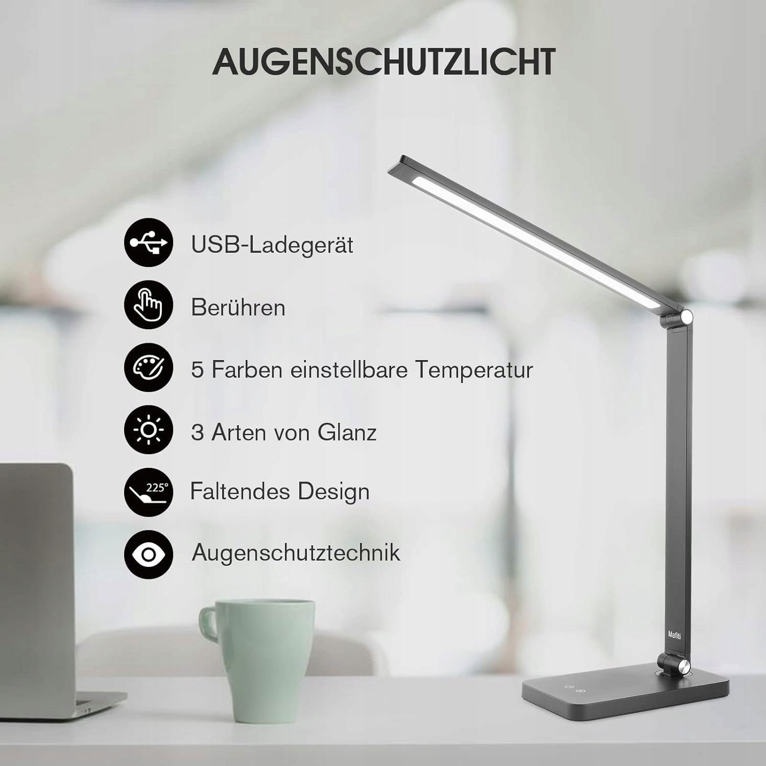 【Światło przyjazne dla oczu】Ta lampa biurkowa z zaawansowaną technologią miękkiego światła wytwarza równomierne, przyjemne i miękkie światło, bez migotania, bez zawrotów głowy, bez cienia, bez zmęczenia oczu.