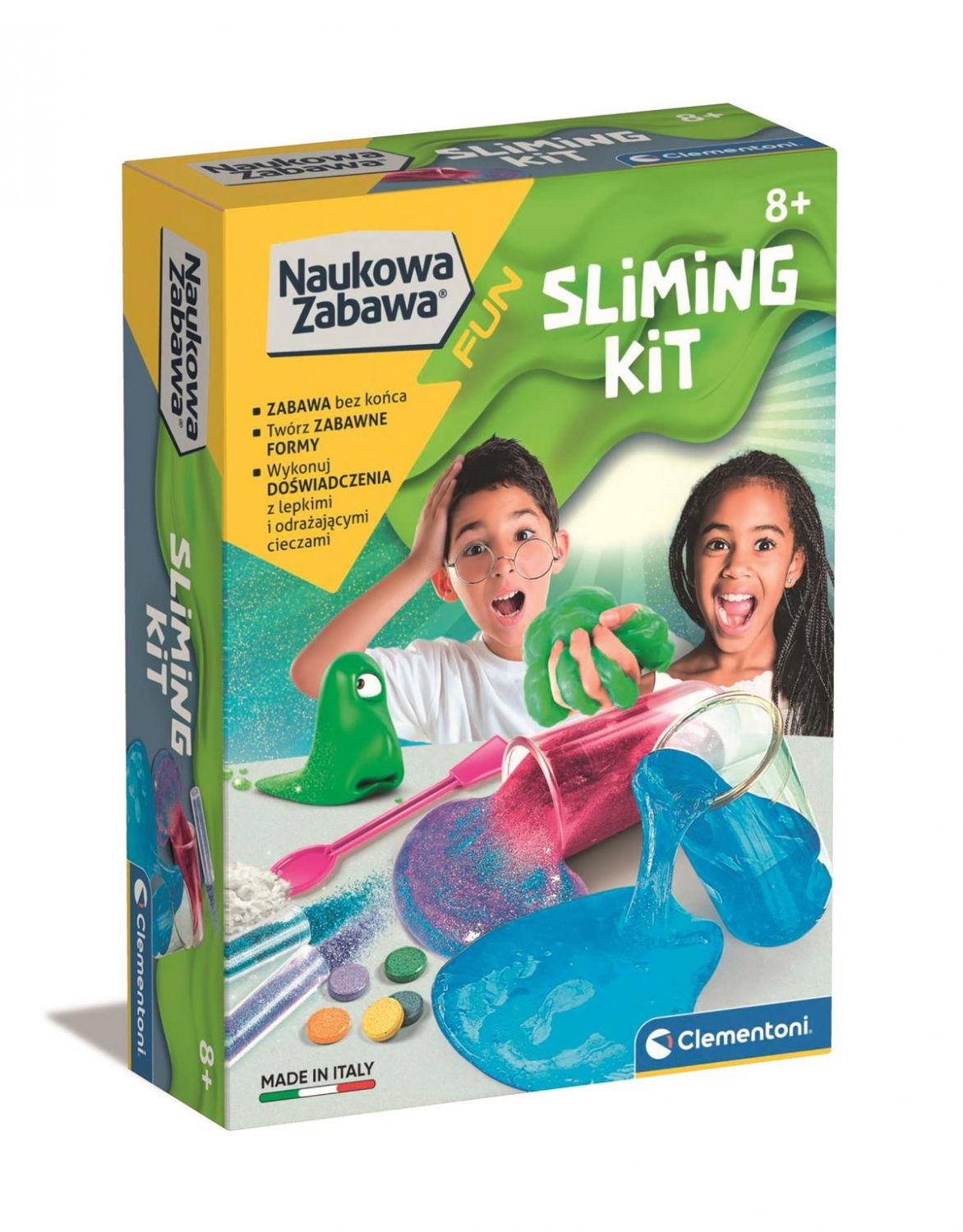 Dzięki kompletnemu zestawowi składników, takich jak klej, roztwór aktywujący i barwnik, będziesz mógł stworzyć własny, unikatowy slime. Ta zabawka nie tylko zapewnia niezapomnianą zabawę, ale także rozwija umiejętności eksperymentowania i współpracy z przyjaciółmi. Wprowadź odrobinę nauki do codziennego życia i czerp radość z tworzenia czegoś nowego! Zestaw Doświadczenia Slime to doskonały prezent dla młodych odkrywców, jednak zaleca się jego użytkowanie przez dzieci powyżej 3. roku życia. Odkryj magiczny świat slime i ciesz się naukową przygodą już dziś!