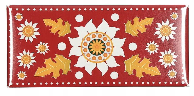 Magnes pokryty jest połyskującą folią. Może być doskonałym upominkiem folkowym. Taki magnes to świetna pamiątką z Polski lub ozdoba folk na lodówce, pralce lub zmywarce.
