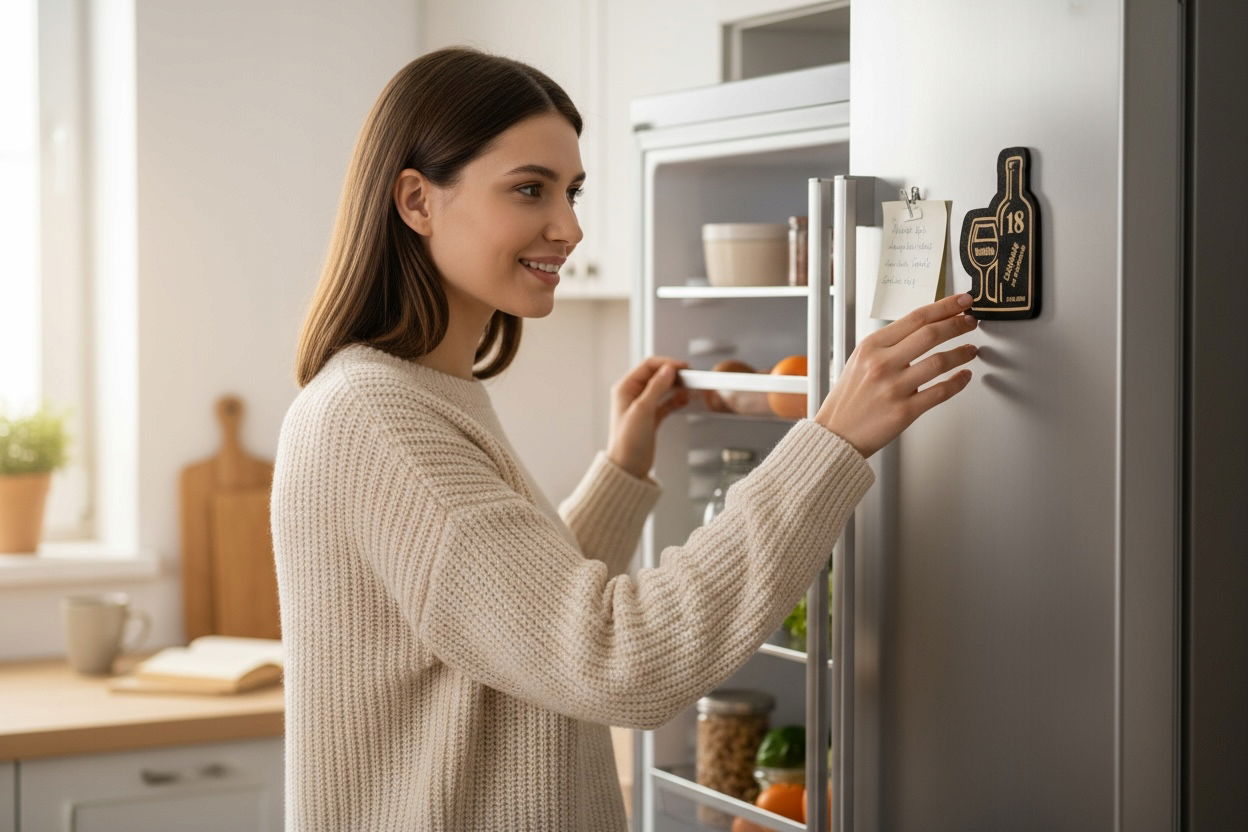 Tył: magnes – idealny do przyczepienia na lodówkę lub tablicę