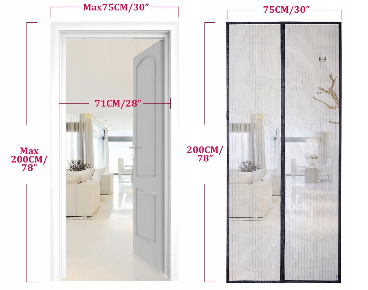 Magnetyczna moskitiera do drzwi Apalus 75x200 bez wiercenia samozamykająca