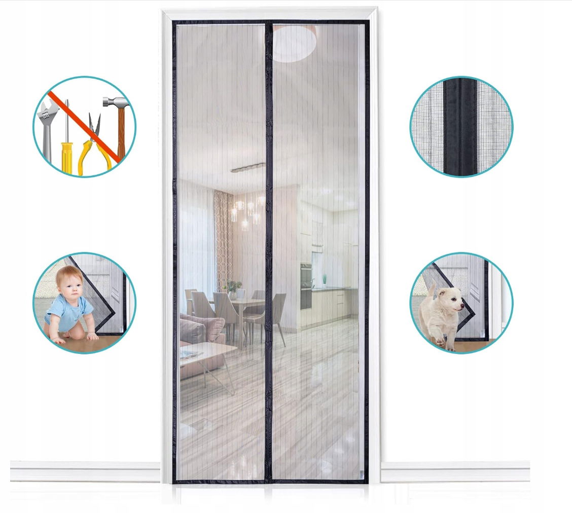 - ✴️CICHY I AUTOMATYCZNY – W magnetyczny pasek moskitiery wszyte są silne magnesy. Podczas przechodzenia, magnesy rozdzielają się, szczelnie zamykając magnetyczną zasłonę bez żadnych szczelin. Przezroczysta moskitiera jest oddychająca, dzięki czemu możesz cieszyć się latem nawet z kanapy.