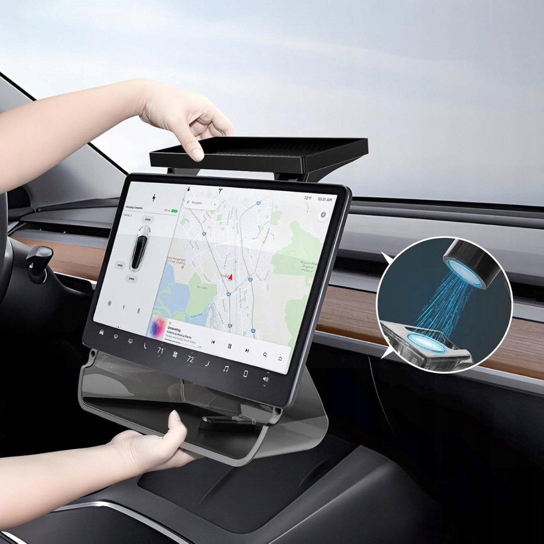Magnetyczny uchwyt akrylowy QKIIP do Tesla Model 3/Y to estetyczne i funkcjonalne akcesorium montowane w obrębie konsoli środkowej pojazdu.