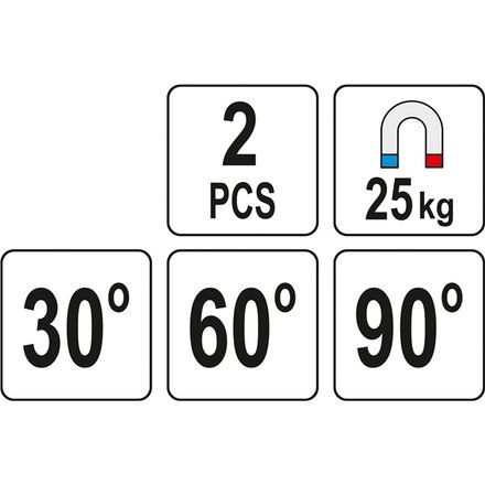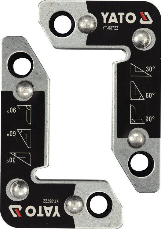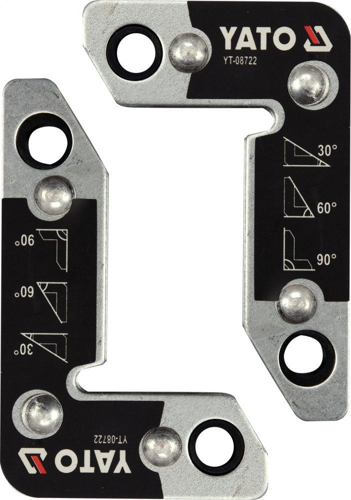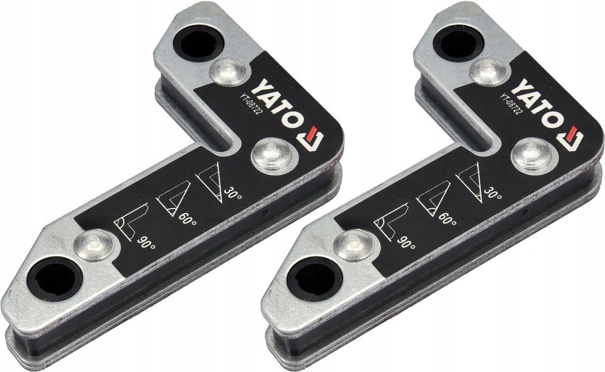 Zestaw 2 magnetycznych kątowników YT-08722 stosowanych przy pracach spawalniczych i montażu pod kątem różnych elementów: blach, łączników, płaskowników, profili, rur etc. Zapewniają bezpieczne trzymanie spawanych elementów dzięki mocnym magnesom.