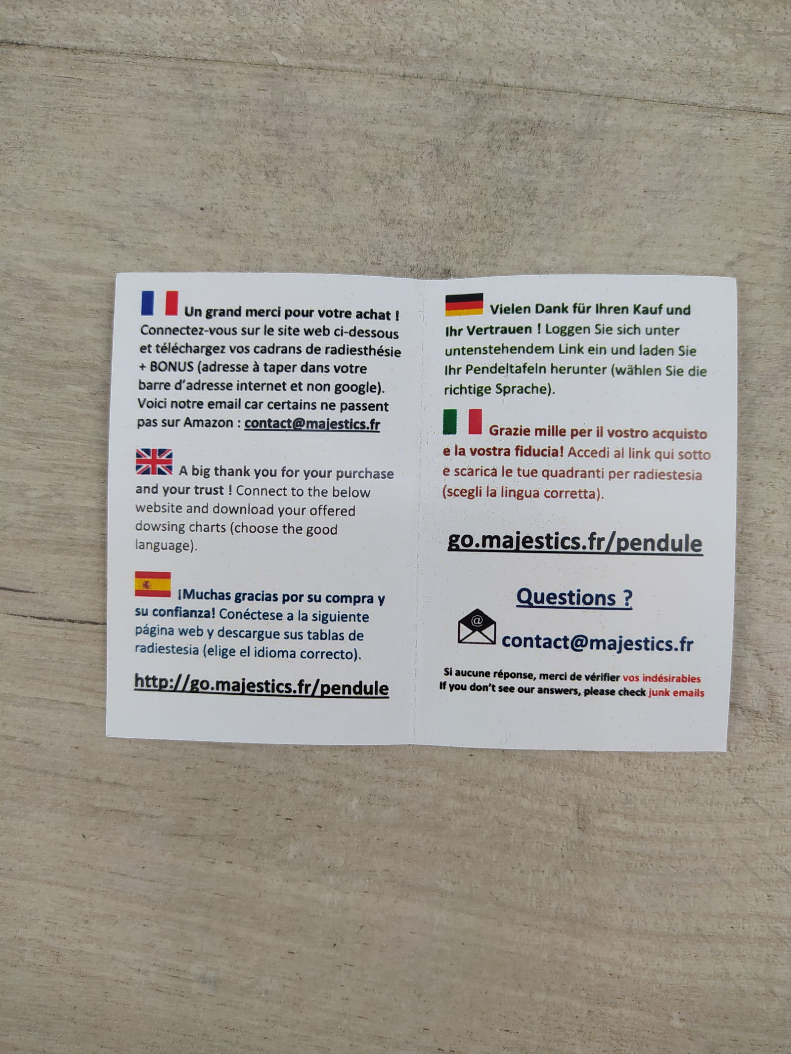 - To boskie wahadło charakteryzuje się jednym z największych wyświetlaczy czasu dostępnych na wahadle. Umożliwia dodawanie wszelkiego rodzaju obiektów (włosy, papier, glebę itp.) w celu przeprowadzenia bardziej szczegółowych badań. Bardzo lekkie, zaletą tego wahadła jest to, że jego ciężar można całkowicie zmieniać w zależności od zawartości.