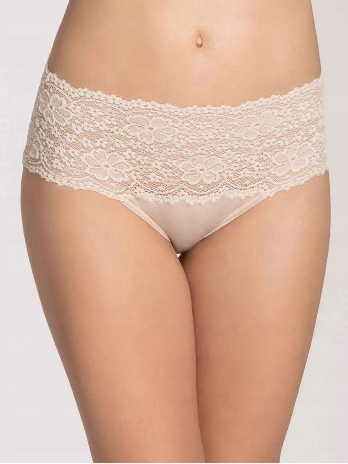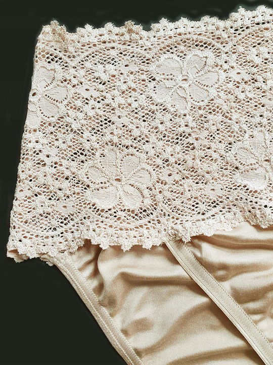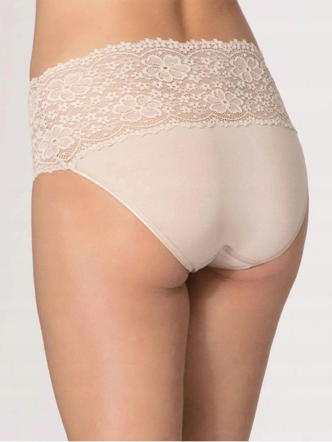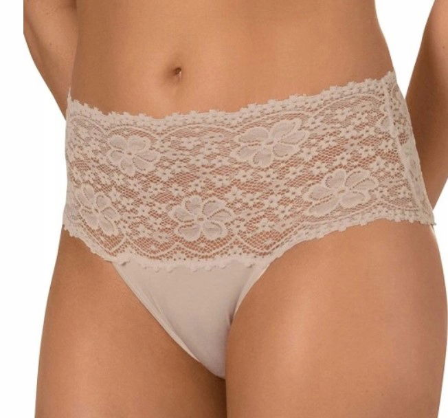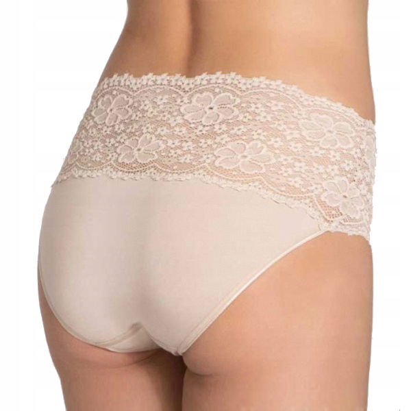 Komfortowe figi z wyższym stanem, ozdobione płaską koronką, zapewnią modny i nowoczesny look.