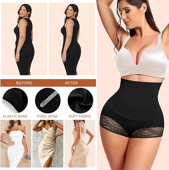Majtki wyszczuplające brzuch z wysokim lub średnim stanem i pięknymi, miękkimi koronkowymi wykończeniami to modna i atrakcyjna koronka wysokiej jakości, którą można nosić przez cały dzień bez uczucia dyskomfortu. Górna część bielizny kontrolnej dla kobiet to koronkowa konstrukcja 3D z zarysem pośladków, która lekko unosi pośladki i doskonale eksponuje linie bioder.