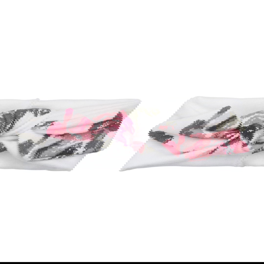 Urocza opaska dla dzieci wykonana z miękkiej, elastycznej bawełny w kolorze białym. Przód ozdobiony stylowym węzłem oraz pięknym kwiatowym wzorem w odcieniach różu, bordo i zieleni. Delikatna dla skóry dziecka – idealna już od pierwszych miesięcy życia. Doskonale sprawdzi się jako dodatek do codziennych stylizacji, sesji zdjęciowych czy specjalnych okazji. Opaska nie uciska główki, zapewniając komfort noszenia przez cały dzień.