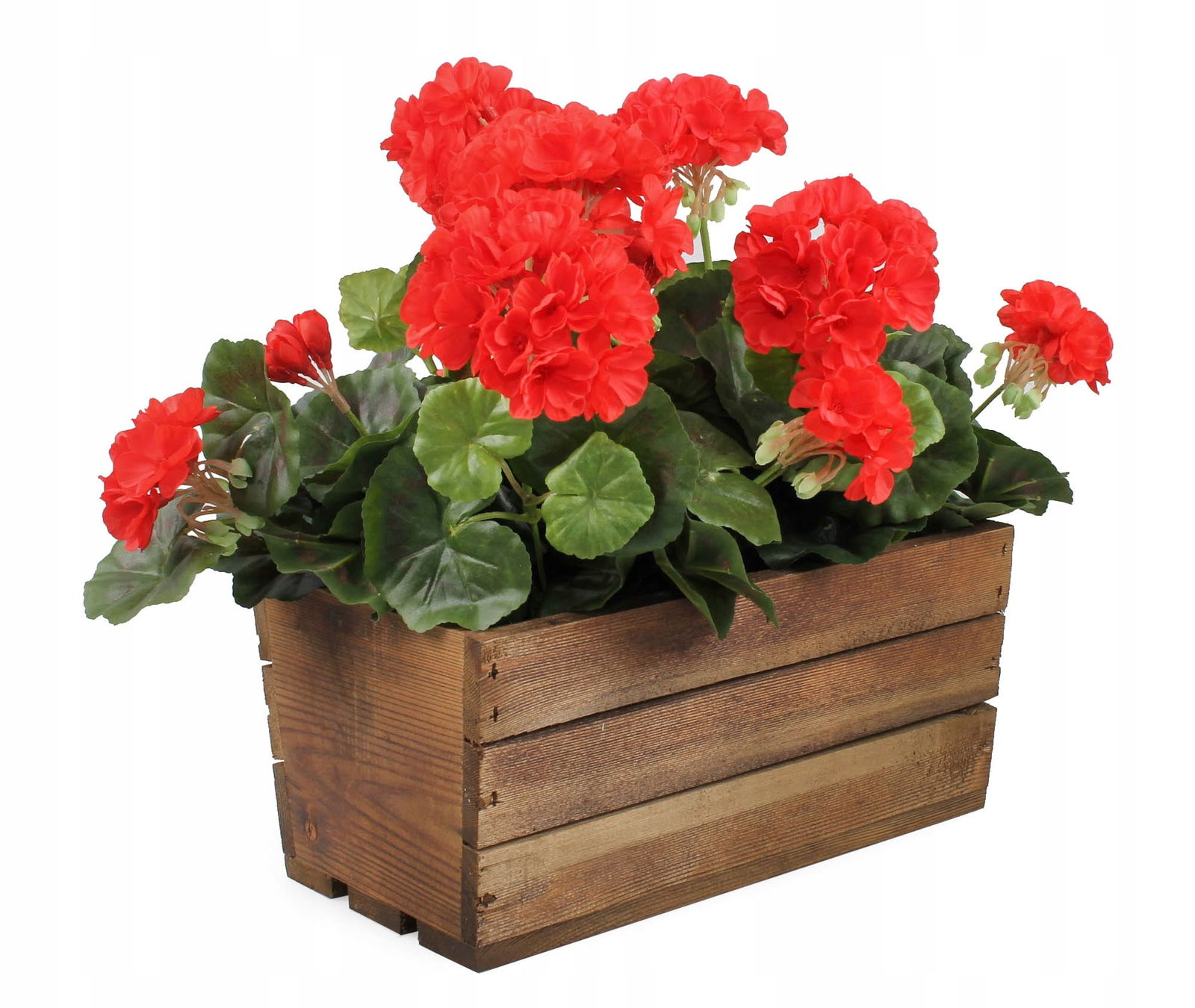 Na tle pomalowanej na brązowo skrzynki różnobarwność kwiatów oraz zieleń łodyg i liści roślin będzie ładnie podkreślona i jeszcze intensywniejsza.