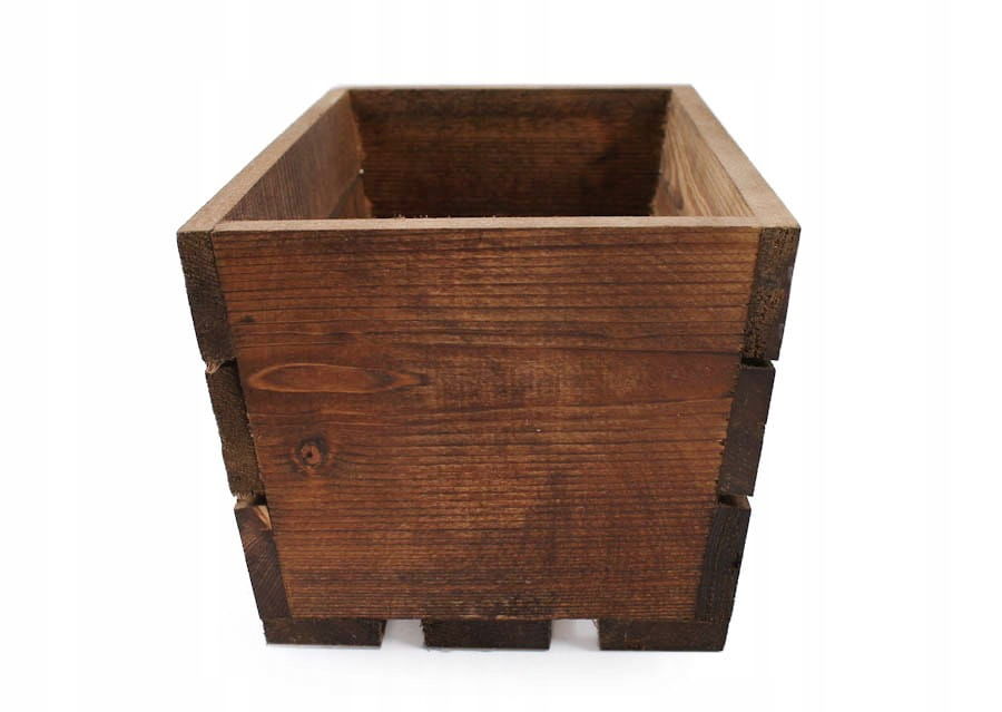 MAŁA BRĄZOWA DREWNIANA SKRZYNKA NA KWIATY I ZIOŁA 30x18x15 cm