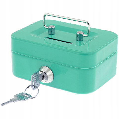 Przechowuj pieniądze bezpiecznie zamknięte na kłódkę i zasuwę w metalowej skrzyni.