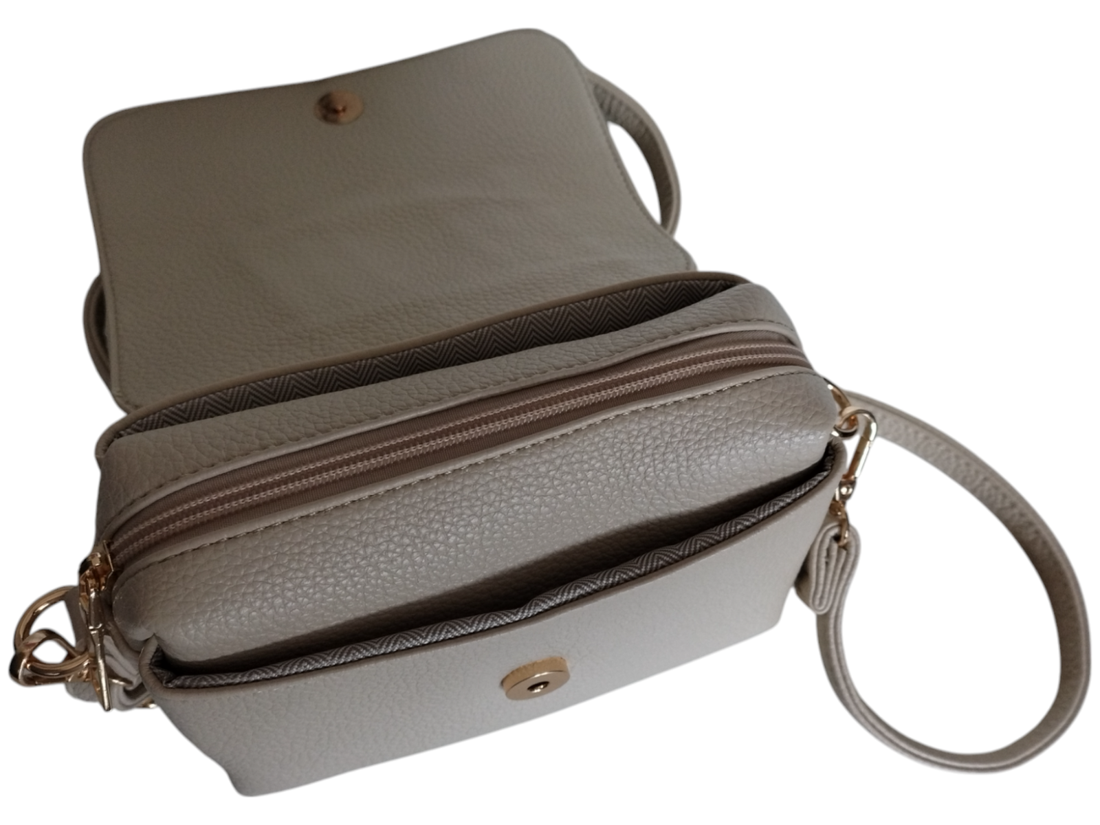 Mała Listonoszka Damska, Modna Beżowa Torebka Wizytowa na Ramię
