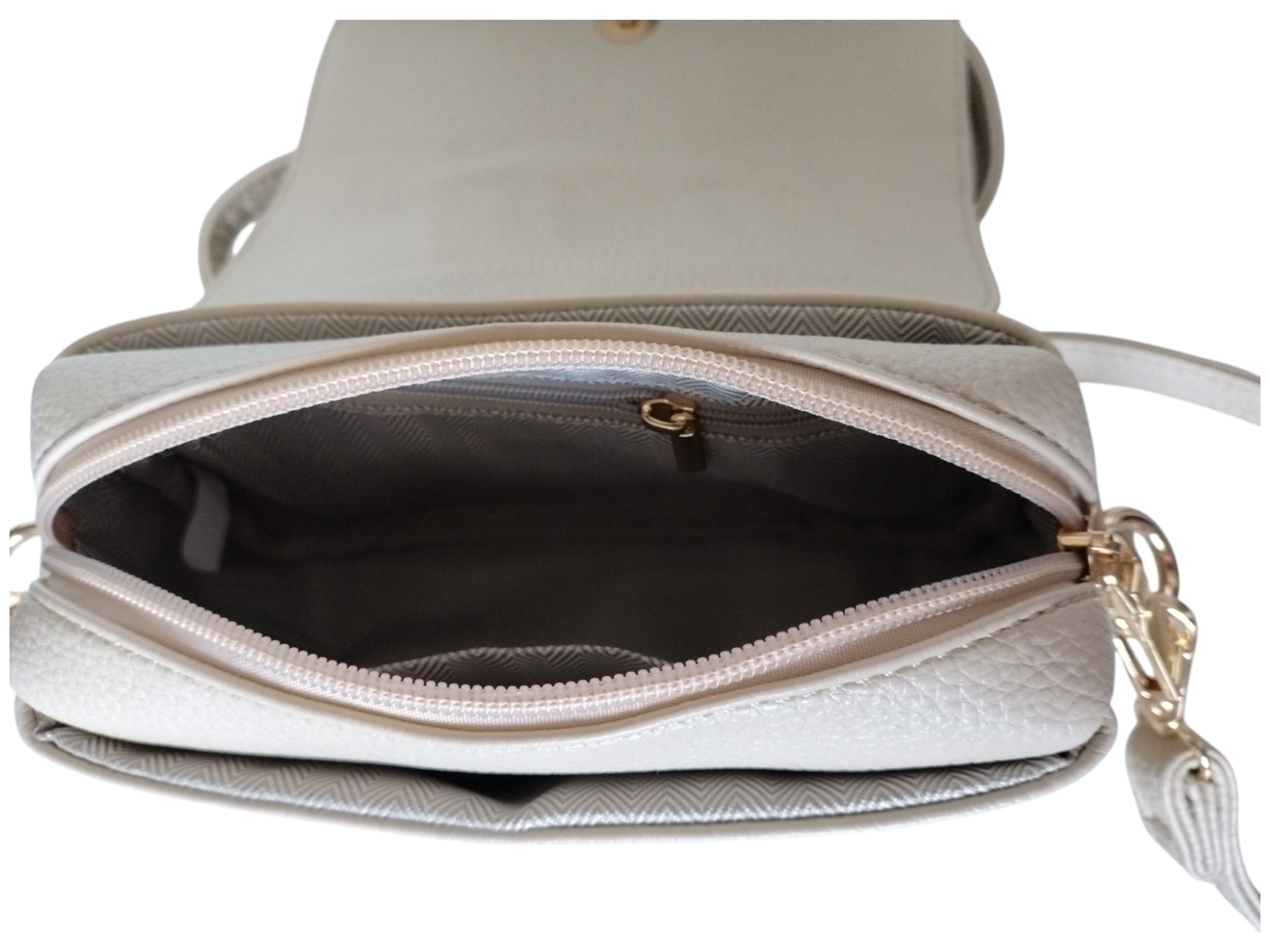 Informacja o Bespieczeństwie: Torebka do użytku codziennego. Nieodpowiednia dla dzieci – ryzyko uduszenia / skaleczenia małymi elementami i paskami. Używać zgodnie z przeznaczeniem. Nie przeciążać. Trzymać z dala od ognia i wysokiej temperatury. Czyszczenie wilgotną miękką ściereczką; nie prać; nie używać rozpuszczalników