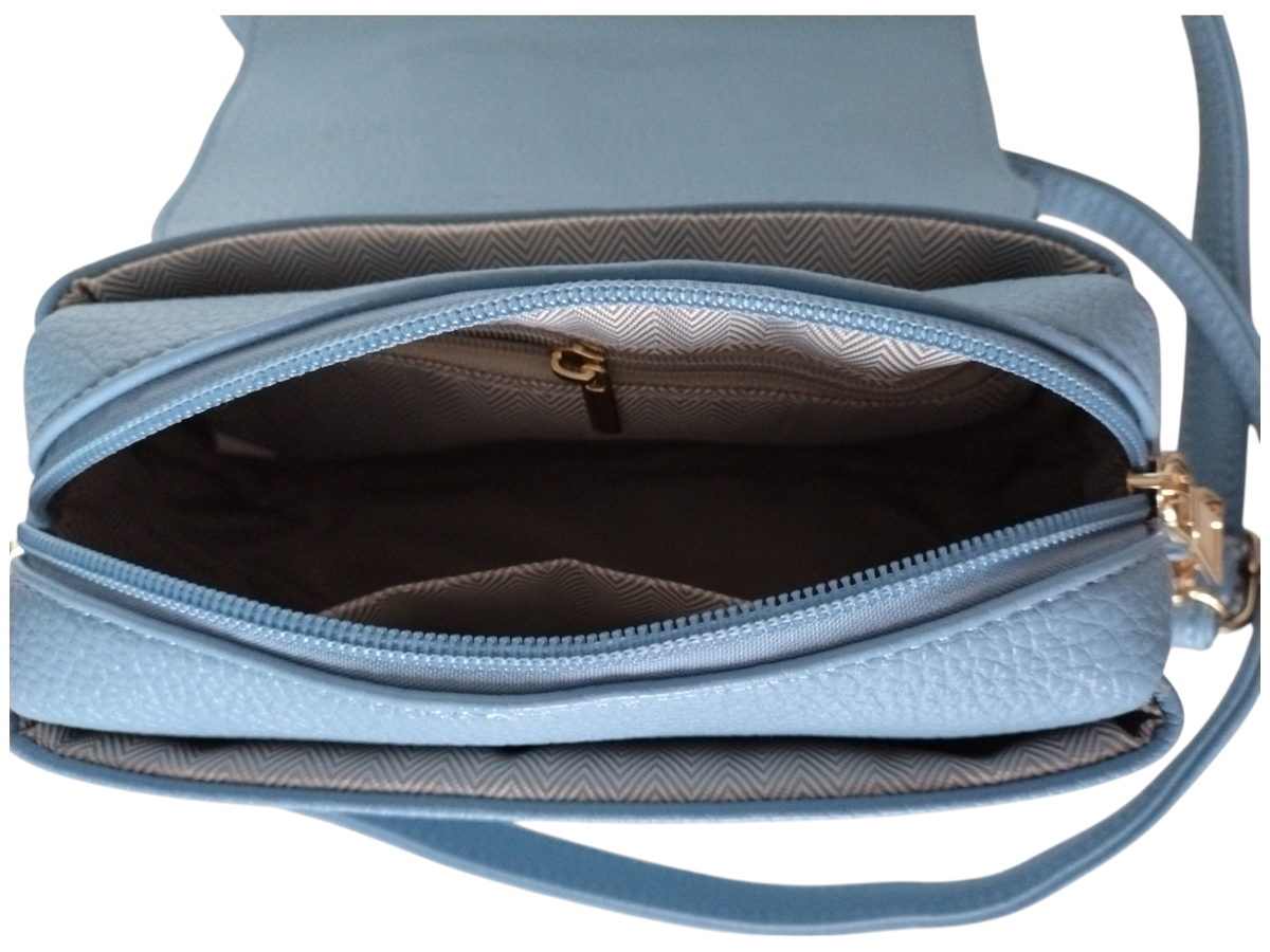 Informacja o Bespieczeństwie: Torebka do użytku codziennego. Nieodpowiednia dla dzieci – ryzyko uduszenia / skaleczenia małymi elementami i paskami. Używać zgodnie z przeznaczeniem. Nie przeciążać. Trzymać z dala od ognia i wysokiej temperatury. Czyszczenie wilgotną miękką ściereczką; nie prać; nie używać rozpuszczalników