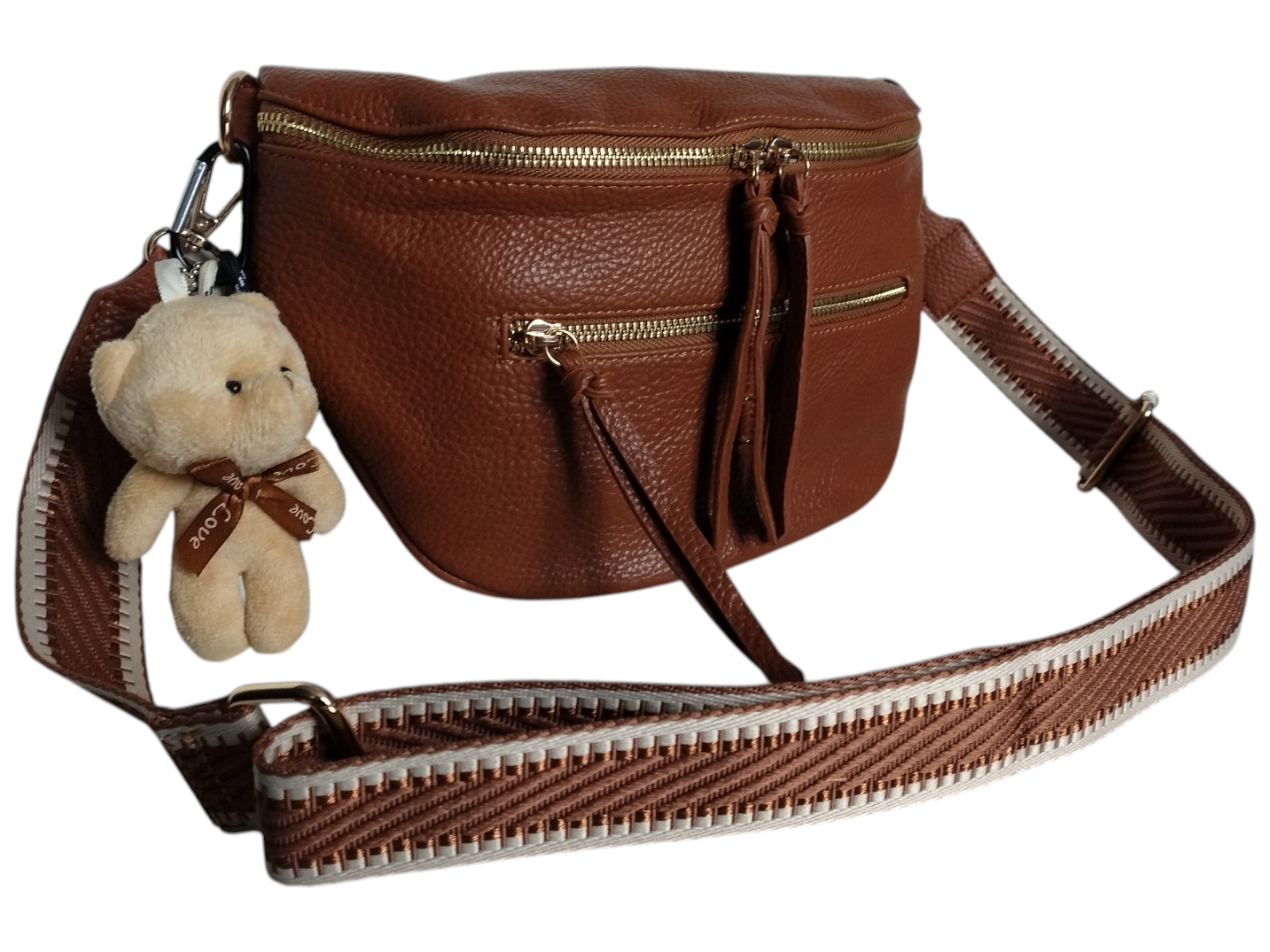 Mała Nerka Damska na Ramię z Zawieszką, Torebka Damska, 2 Paski, Brązowy