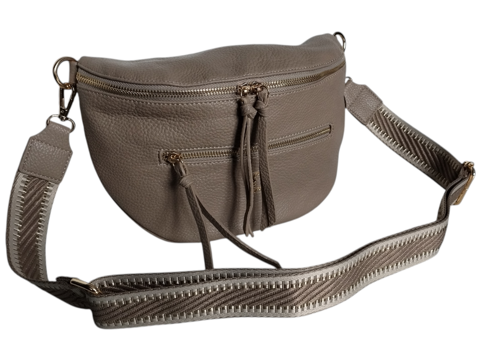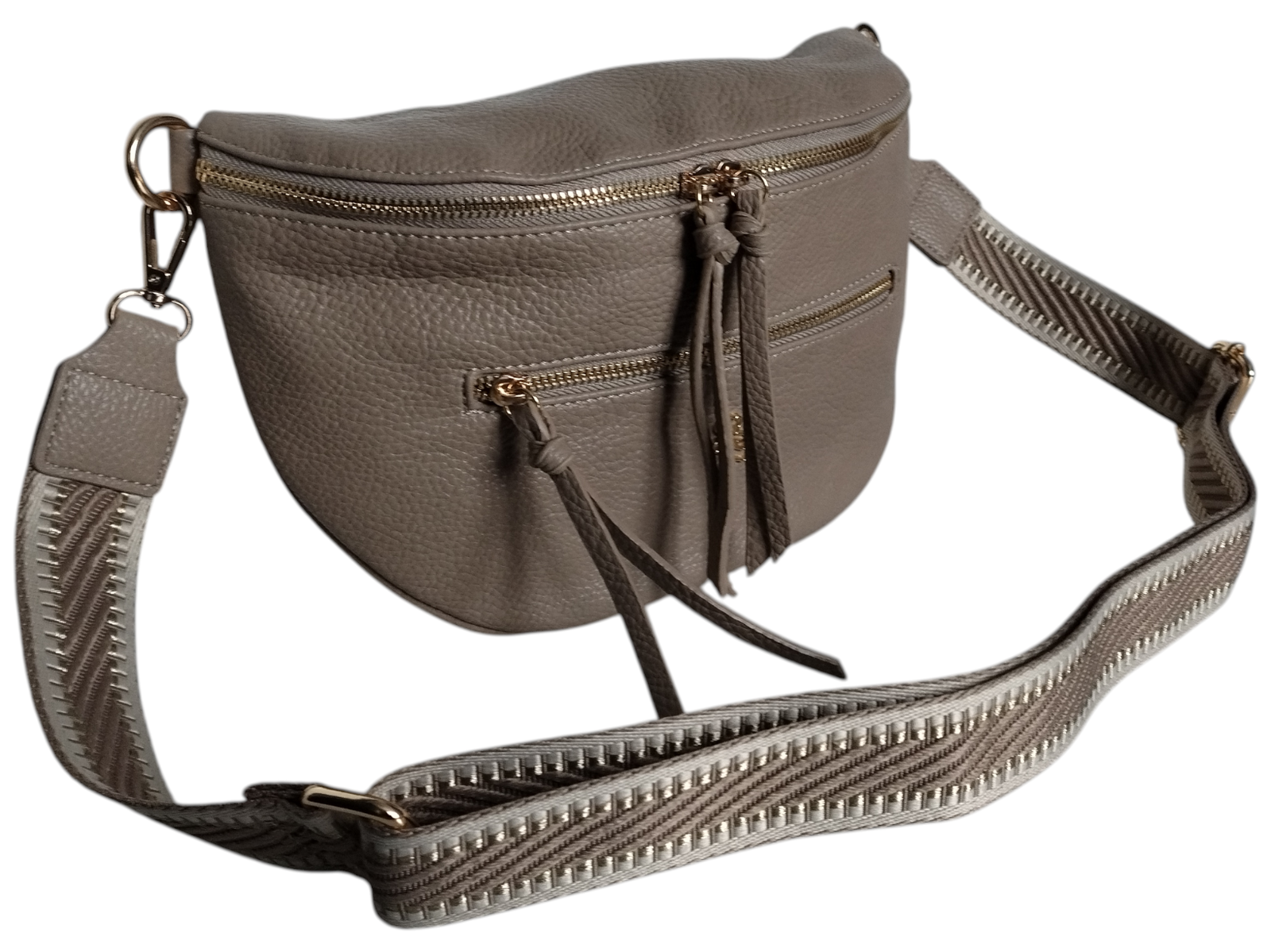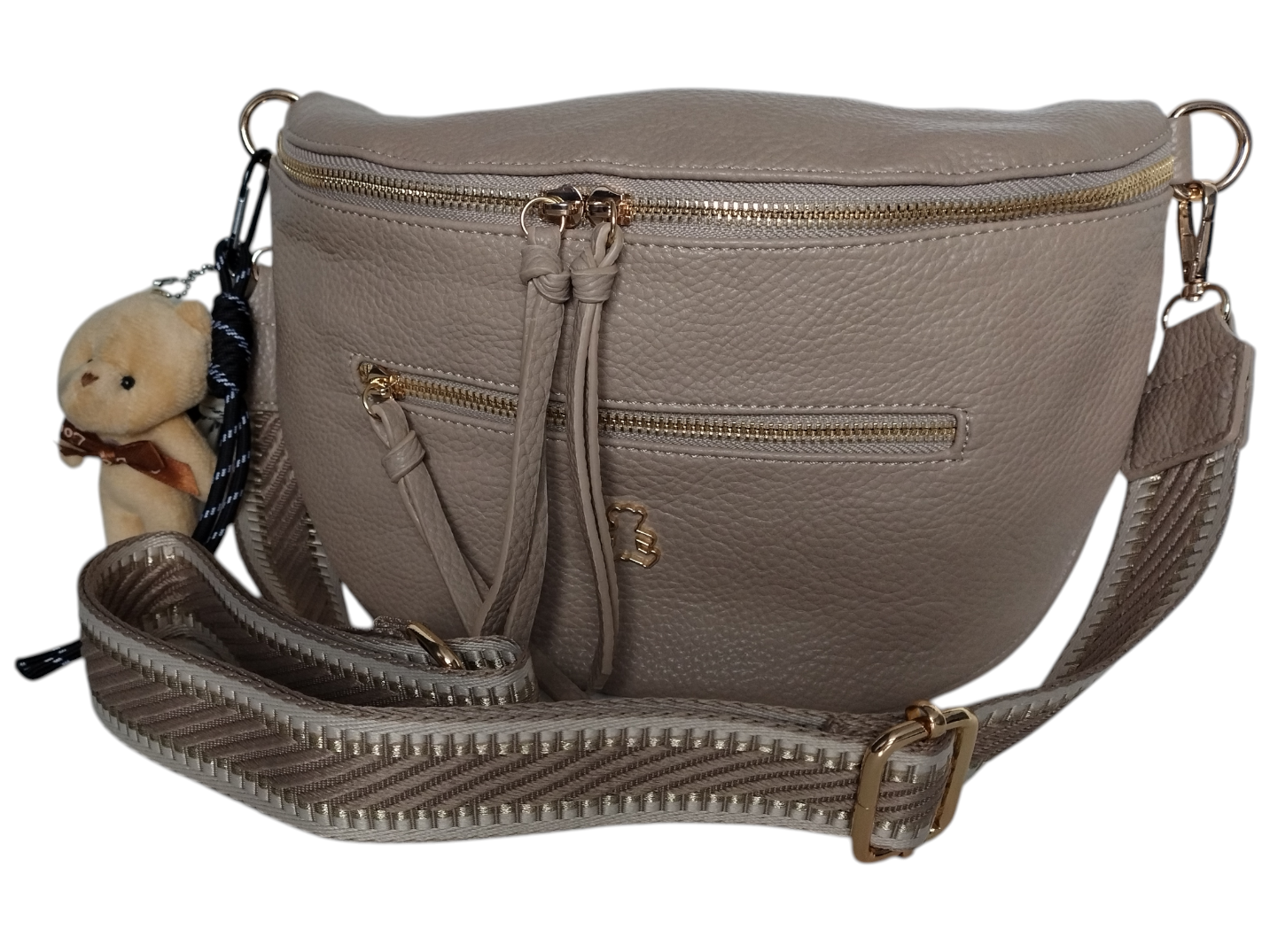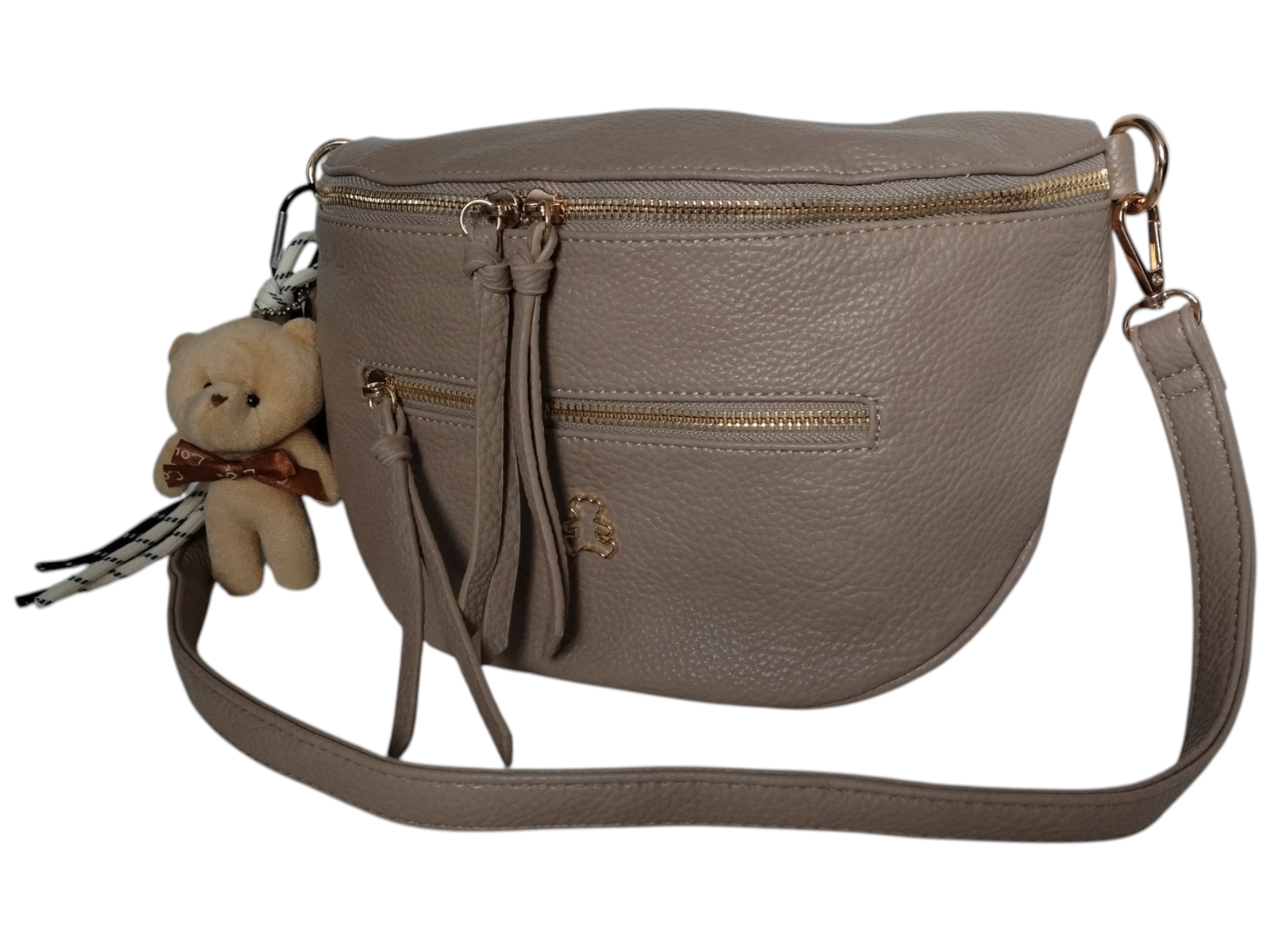 Mała Nerka Damska Na Ramię Z Zawieszką, Torebka Damska, 2 Paski, Ciemny Beż