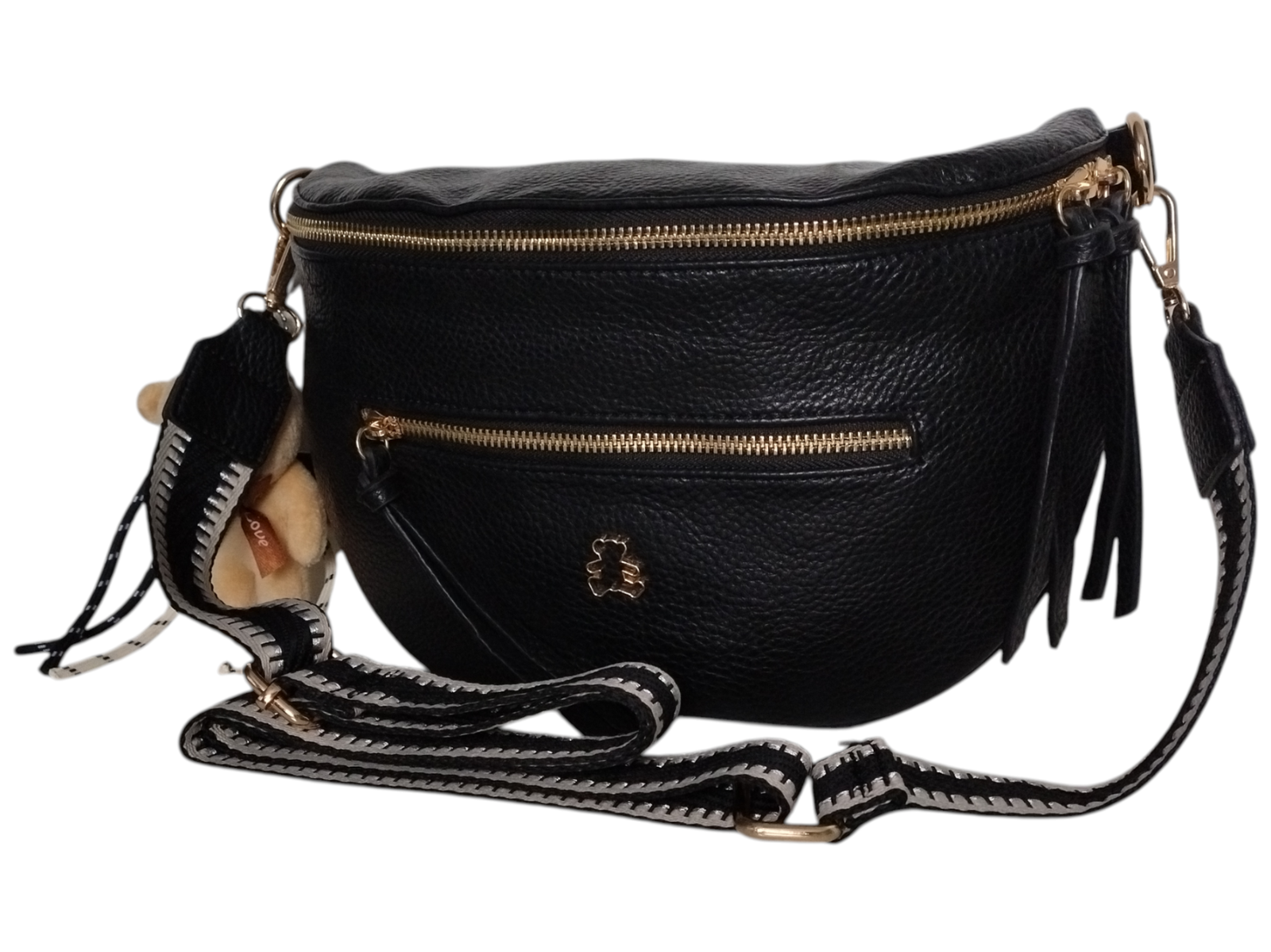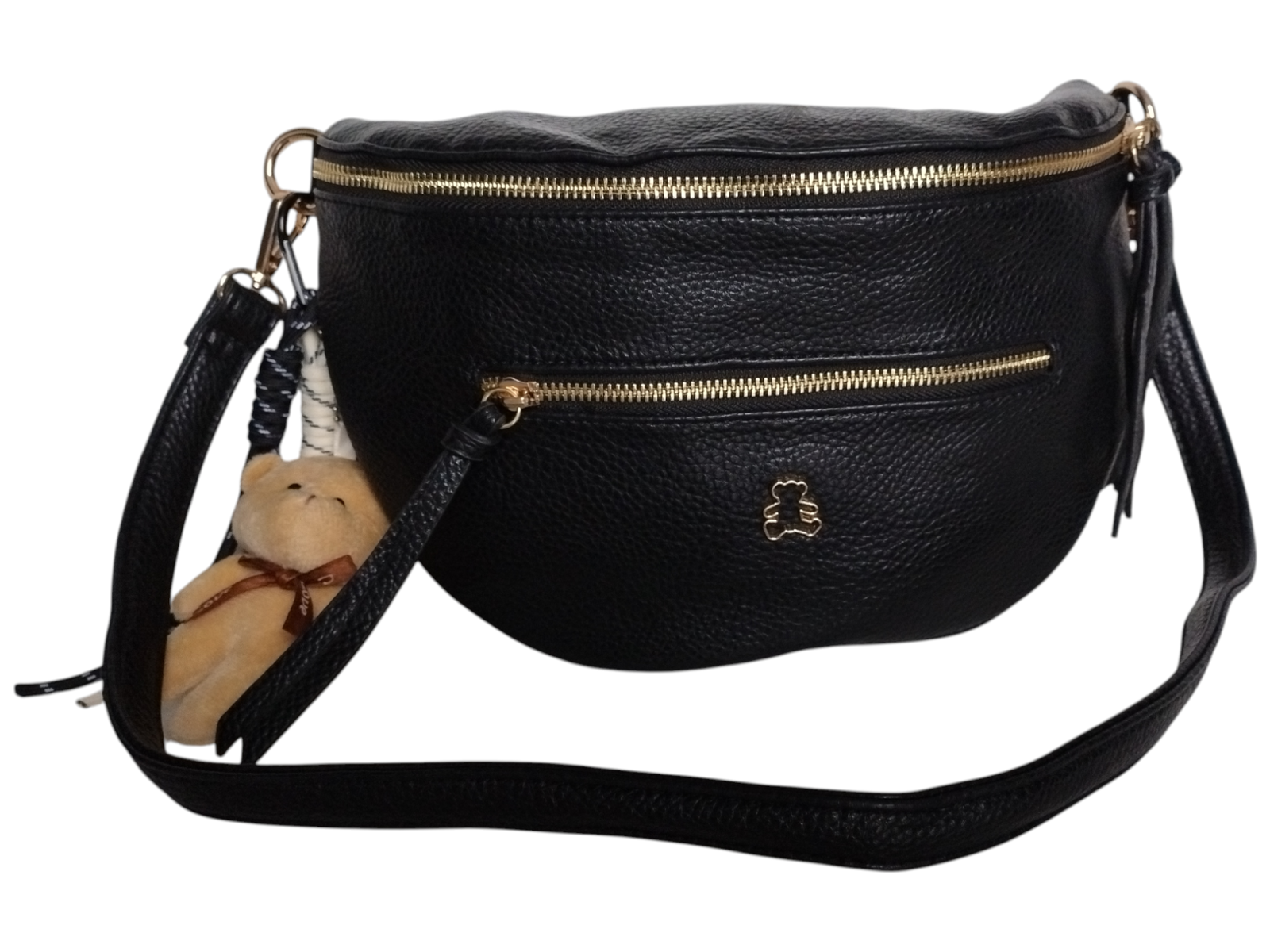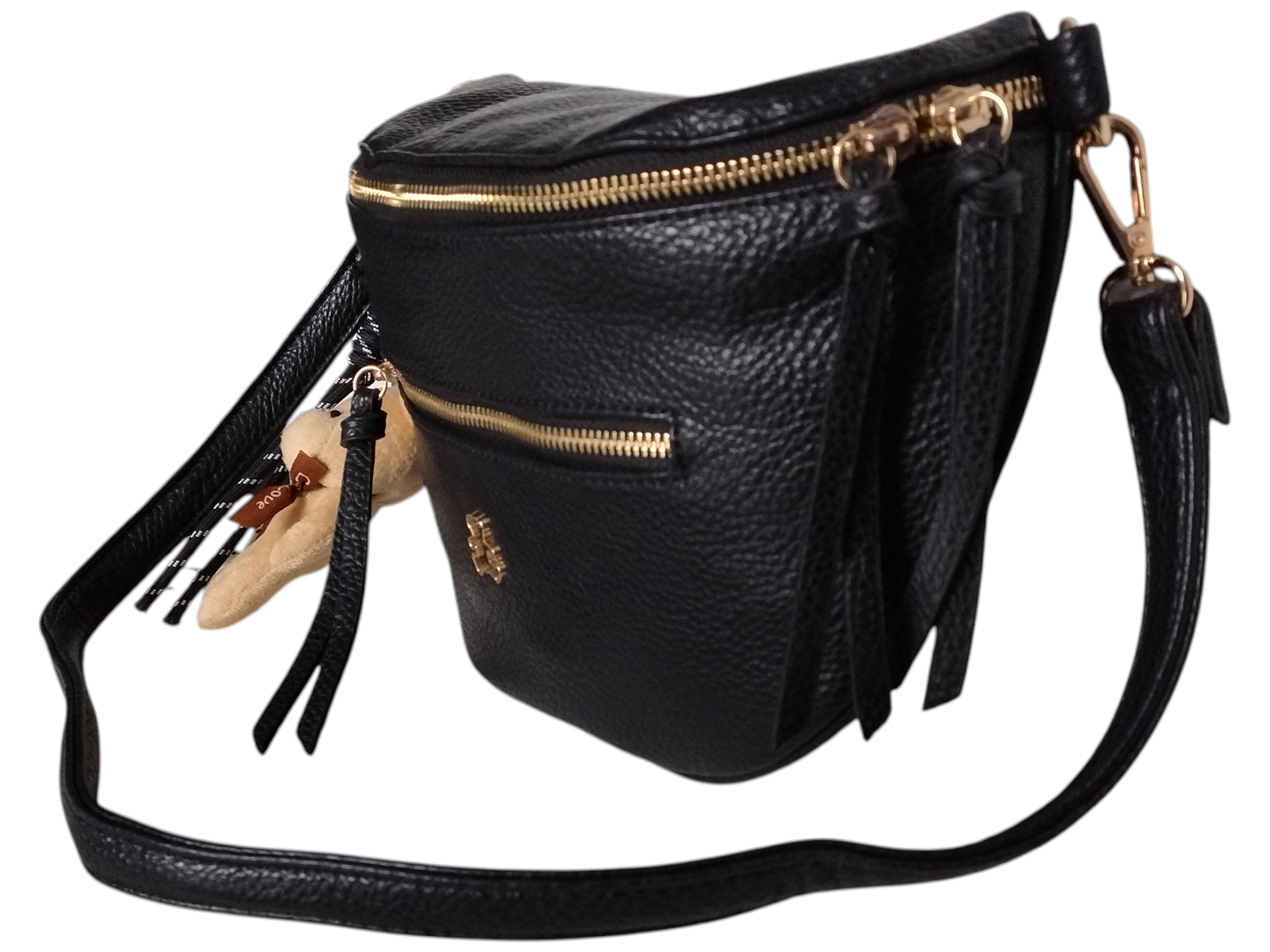Mała Nerka Damska Na Ramię Z Zawieszką, Torebka Damska, 2 Paski, Czarny