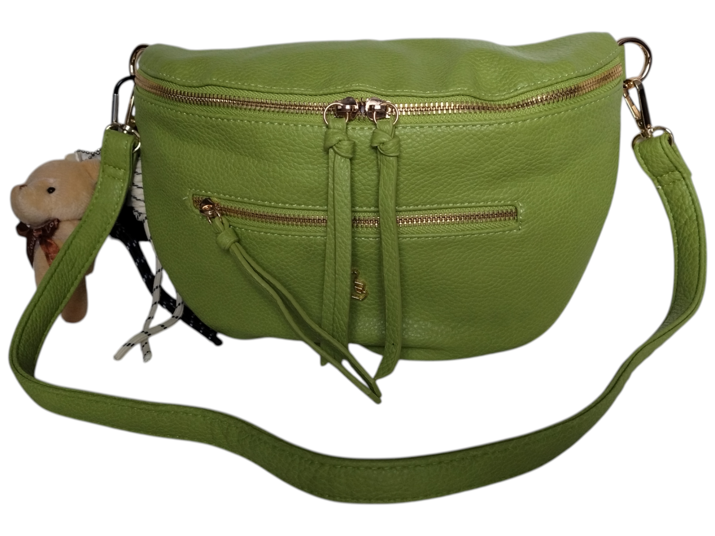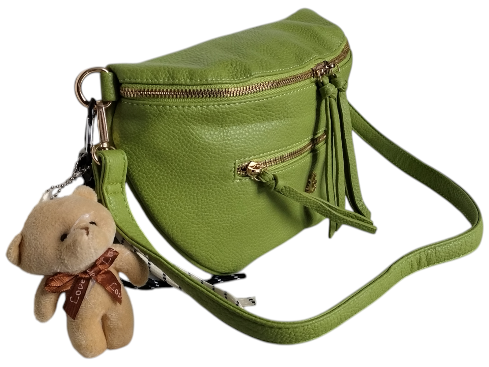 Mała Nerka Damska na Ramię z Zawieszką, Torebka Damska, 2 Paski, Zielony
