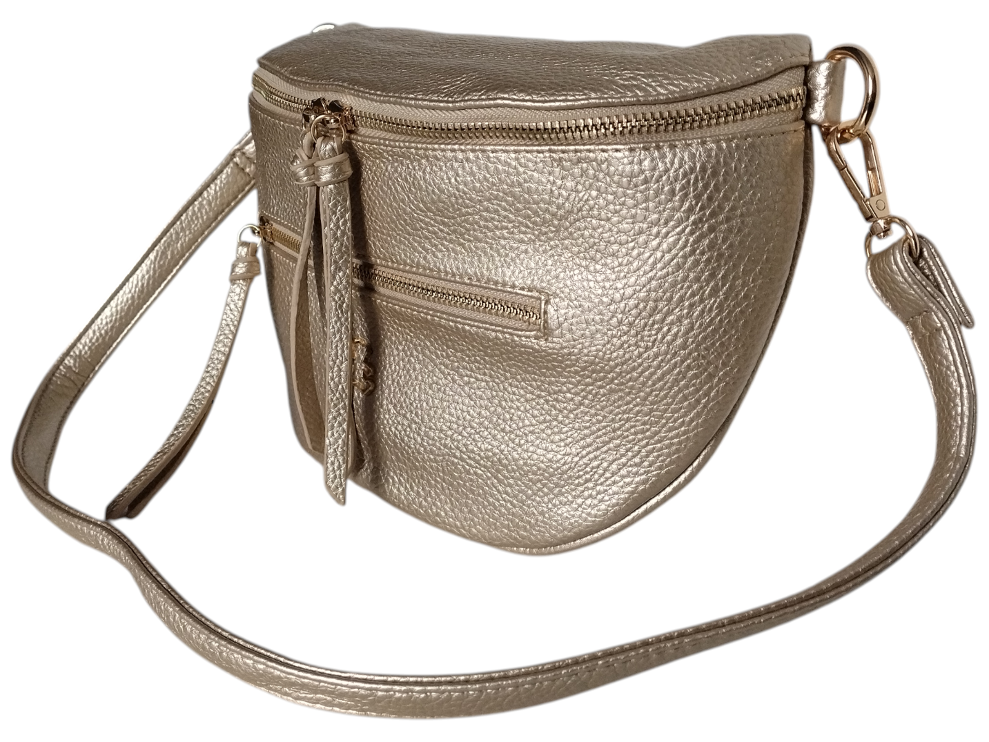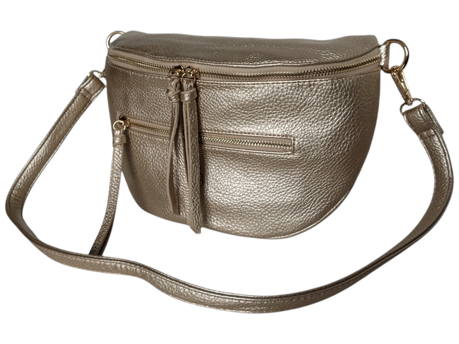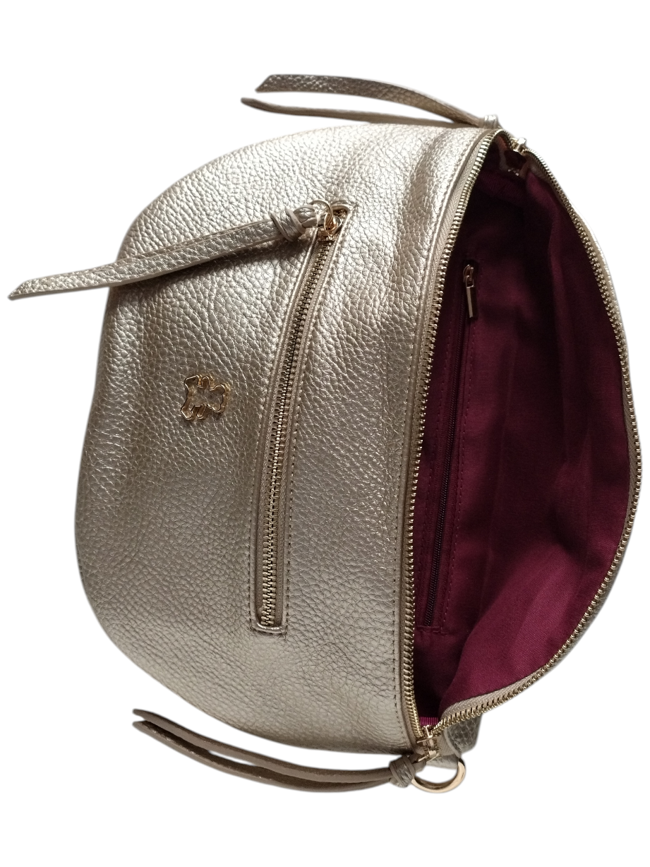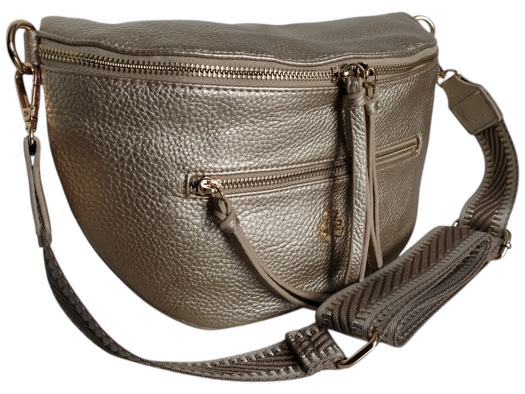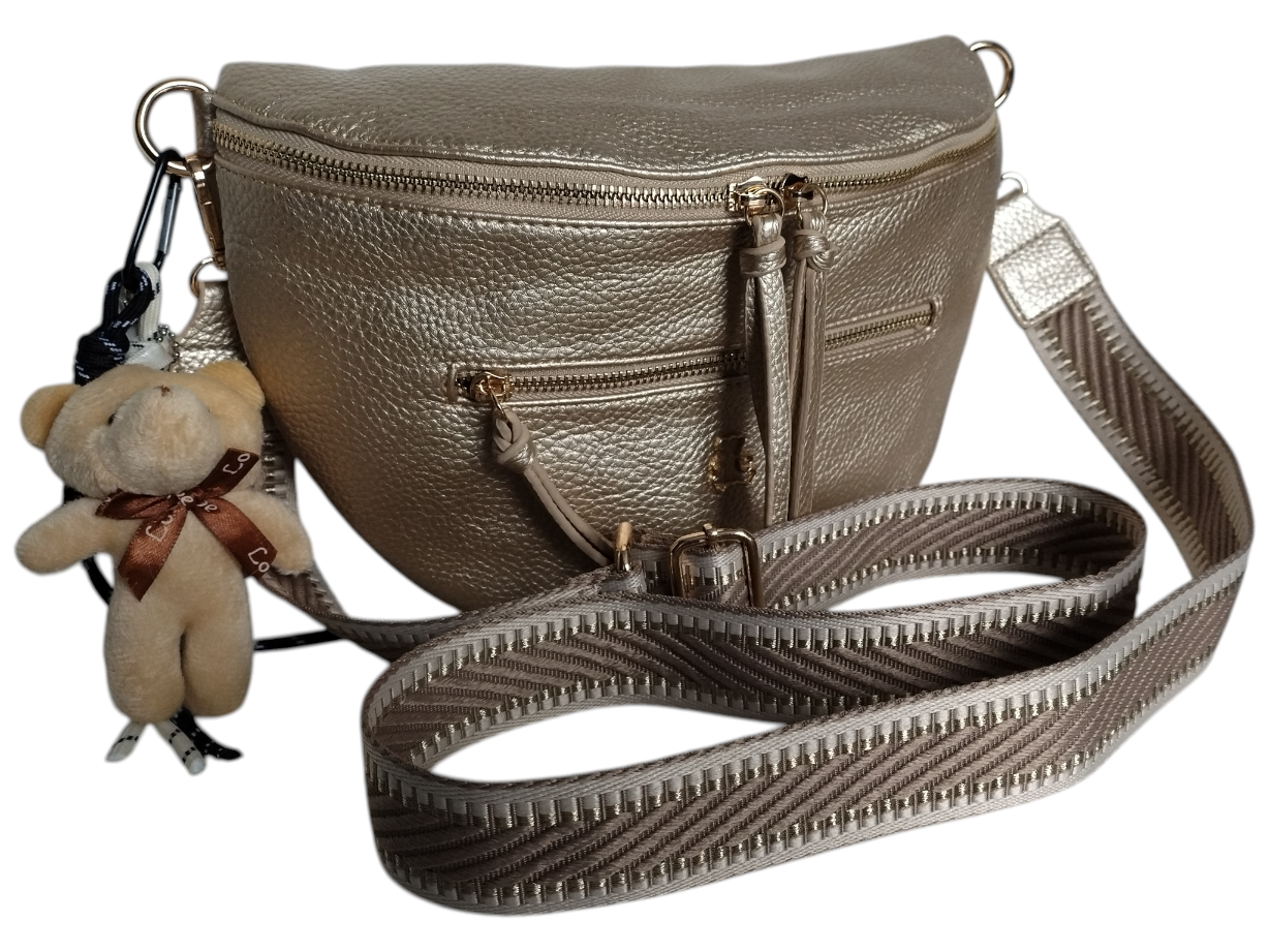 Mała Nerka Damska na Ramię z Zawieszką, Torebka Damska, 2 Paski, Złoty