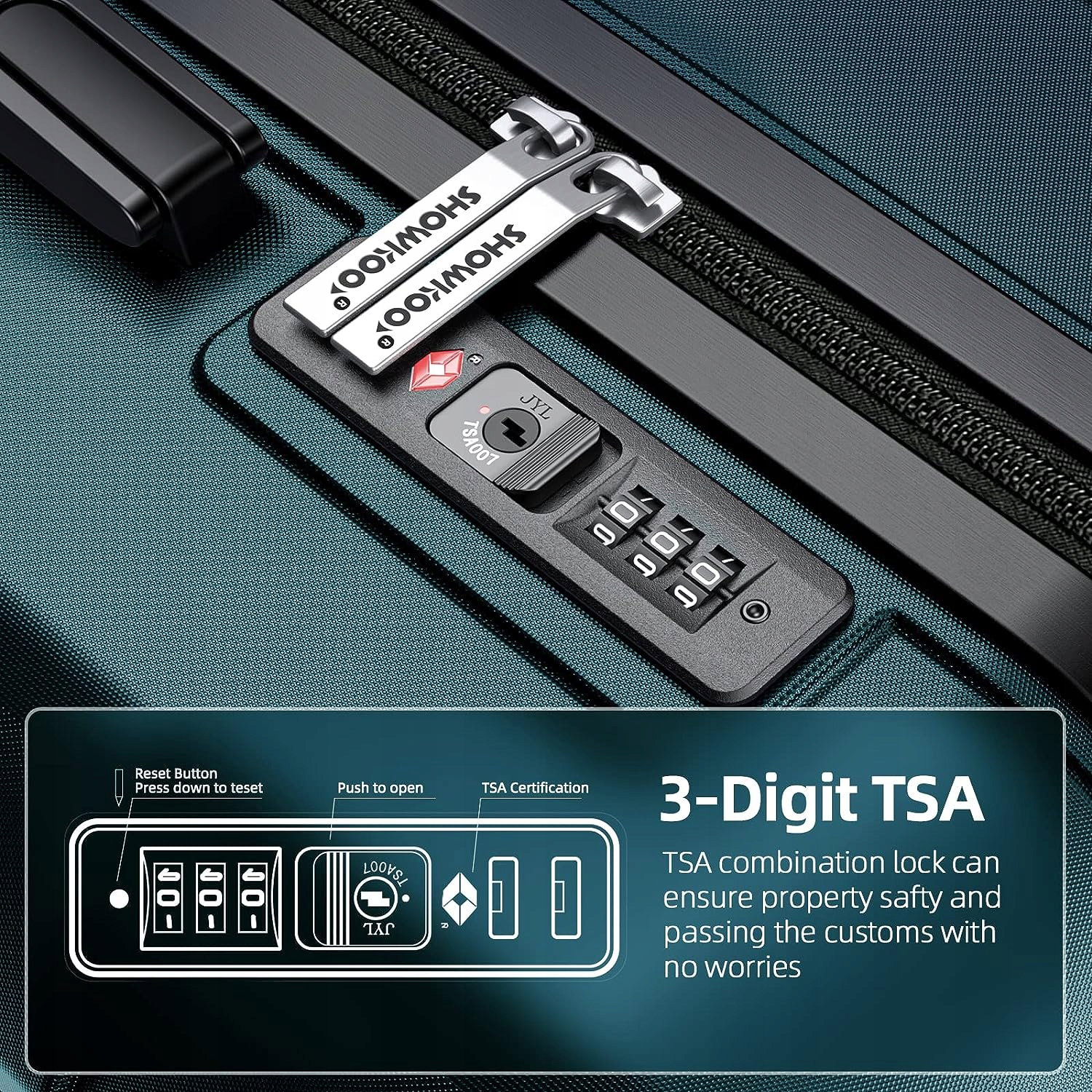 Walizka SHOWKOO jest wyposażona w montowany z boku zamek TSA, dzięki czemu nie musisz się martwić o kontrolę bezpieczeństwa podczas odprawy celnej. Zamek TSA pozwala wyłącznie pracownikom TSA sprawdzić Twój bagaż bez uszkadzania zamka, dzięki czemu Twój bagaż jest bezpieczniejszy, a podróż wygodniejsza.