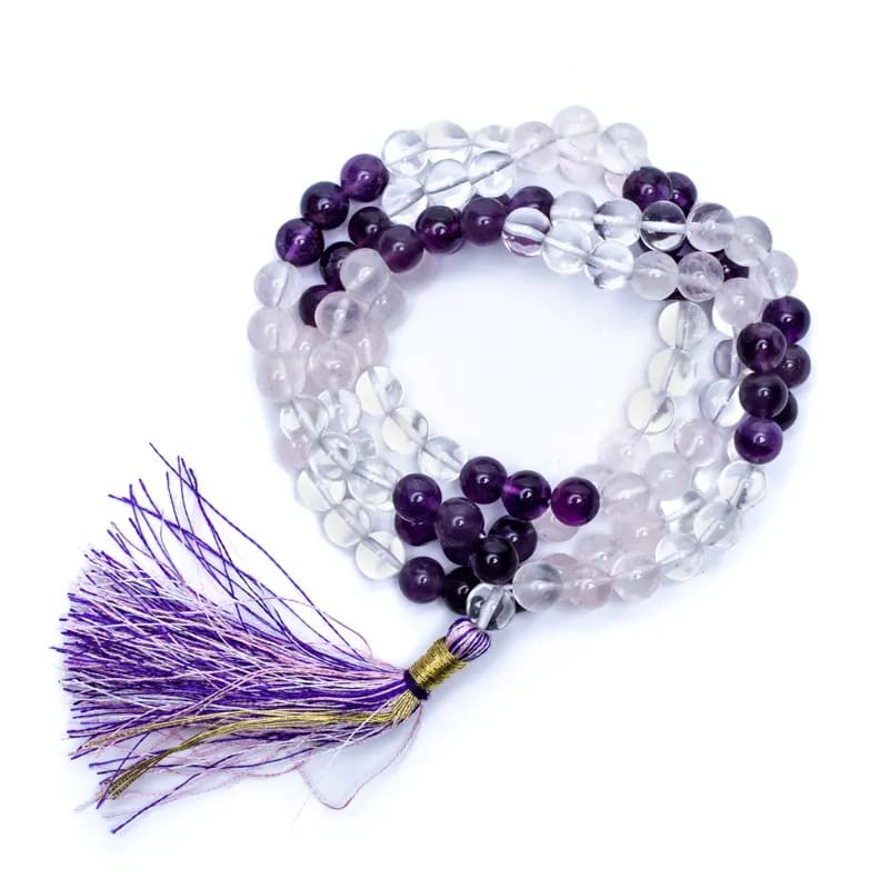 Złoty Trójkąt: 36 koralików Ametyst, 36 koralików Rock Crystal, 36 koralików Różowy Kwarc w kombinacji 3 koralików.