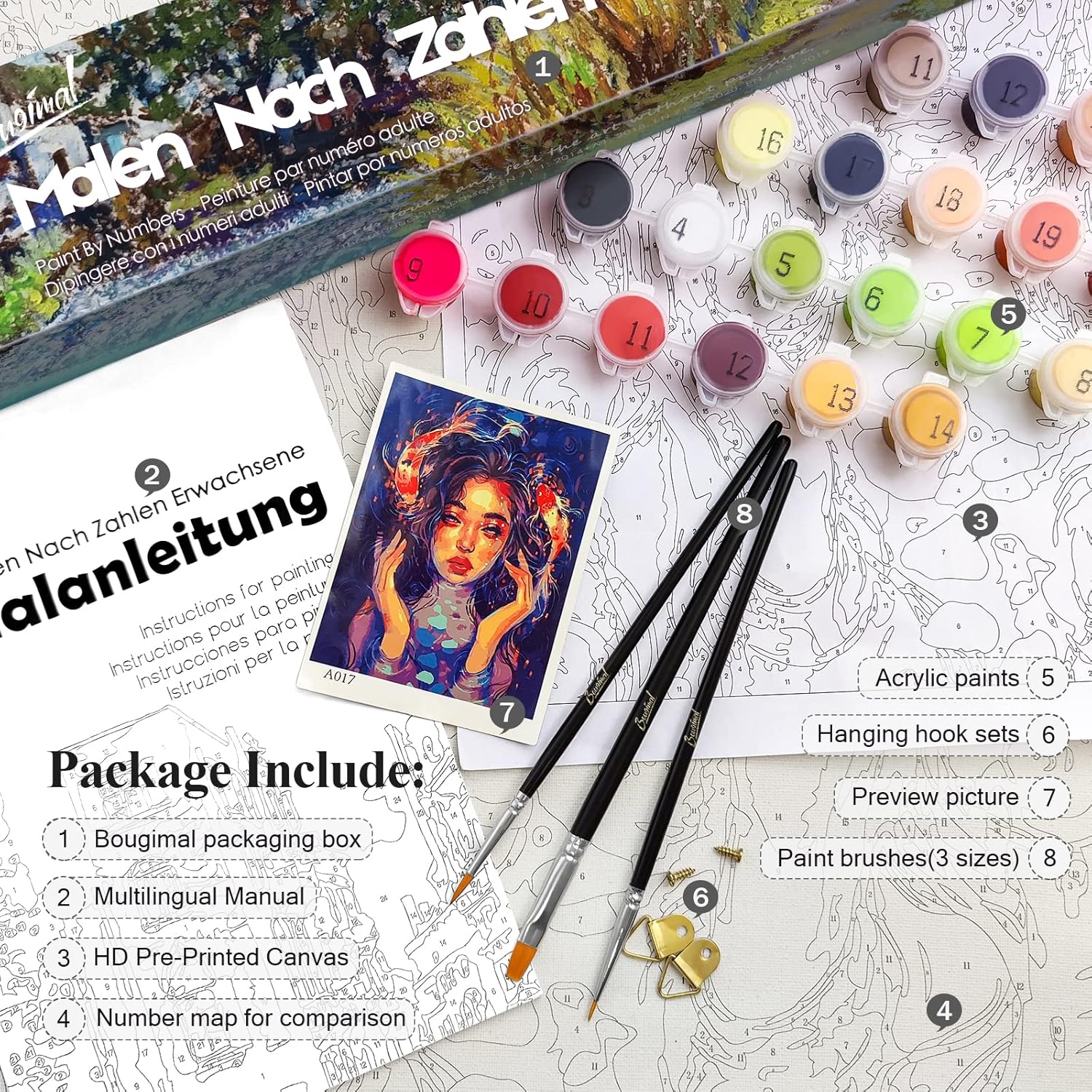 Zanurz się w fascynujący świat sztuki z Bougimal! Nasze malowanie według numerów to idealny sposób na relaks i wyzwolenie twórczego potencjału, nawet dla początkujących. Ciesz się pięknym efektem końcowym i poczuj dumę z własnych osiągnięć.