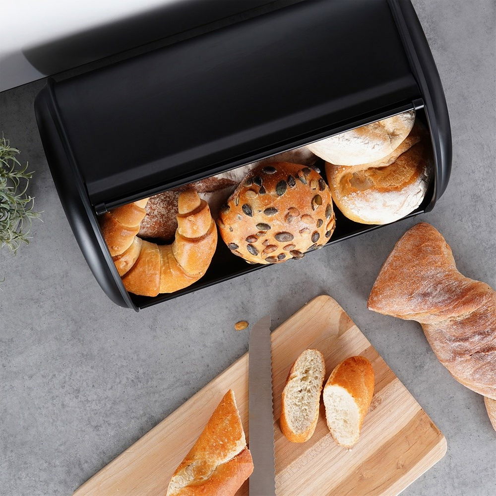Wykonany ze stali nierdzewnej - Chlebak wykonany ze stali nierdzewnej malowanej proszkowo na czarny kolor. Metalowa konstrukcja skutecznie chroni pieczywo przed zgnieceniem i uszkodzeniami.
