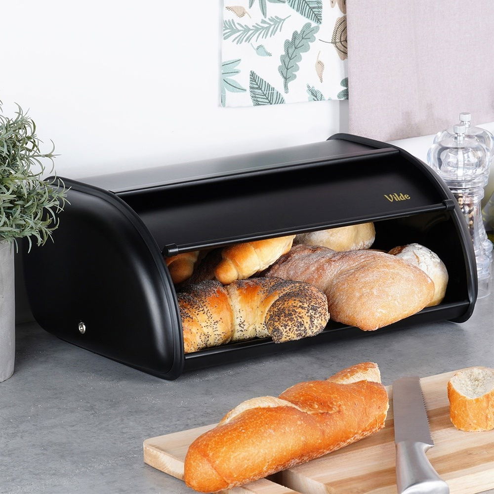 Mały Chlebak Czarny Metalowy Pojemnik Kuchenny na Pieczywo Chleb Bułki