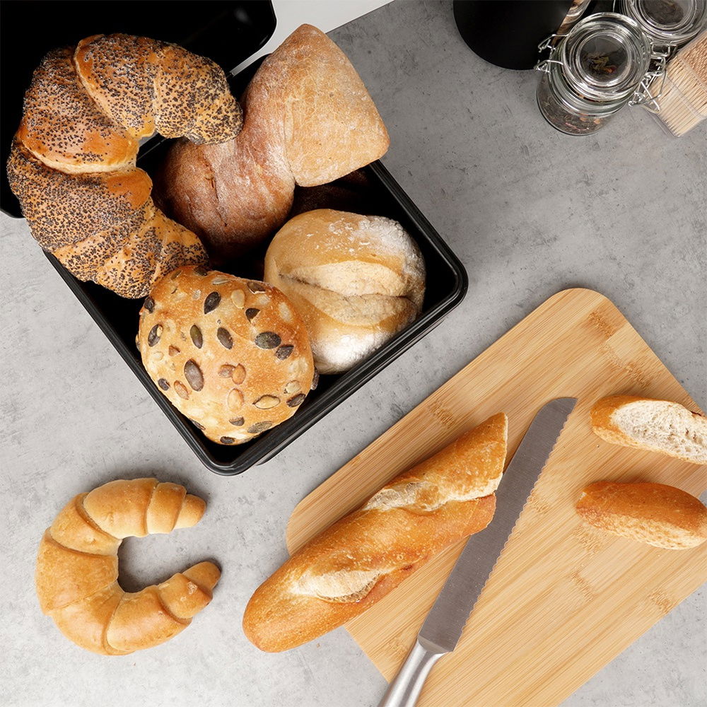 Mały Chlebak Czarny Metalowy Pojemnik Kuchenny na Pieczywo Chleb Bułki