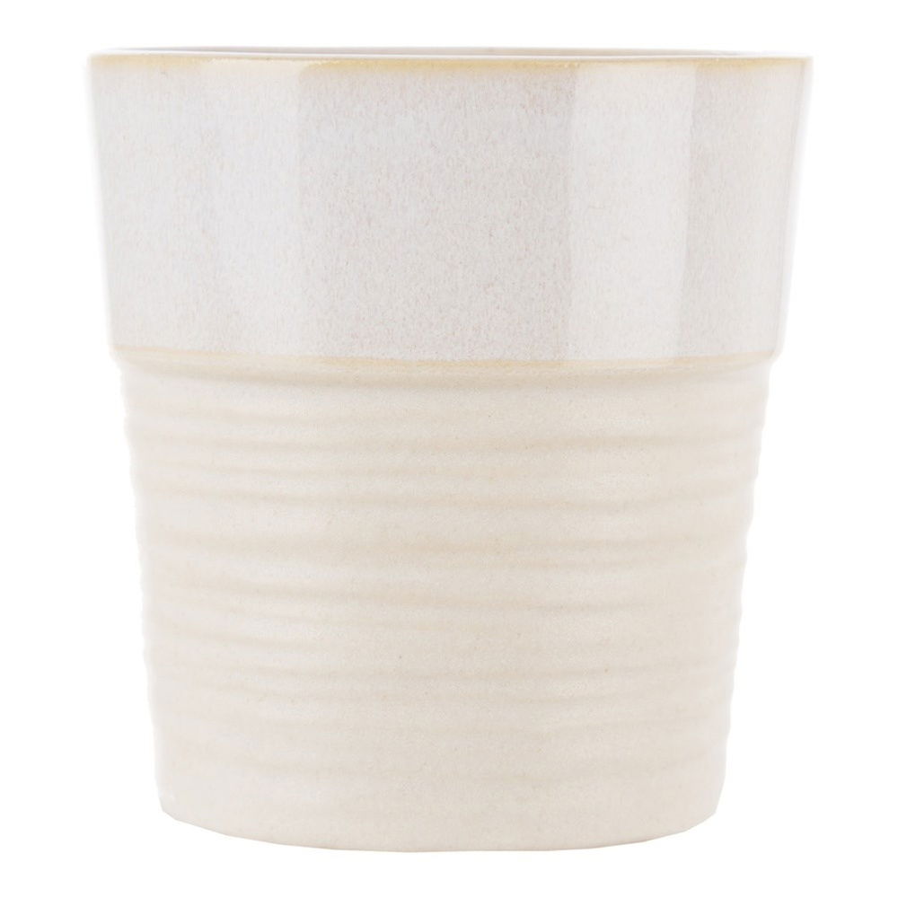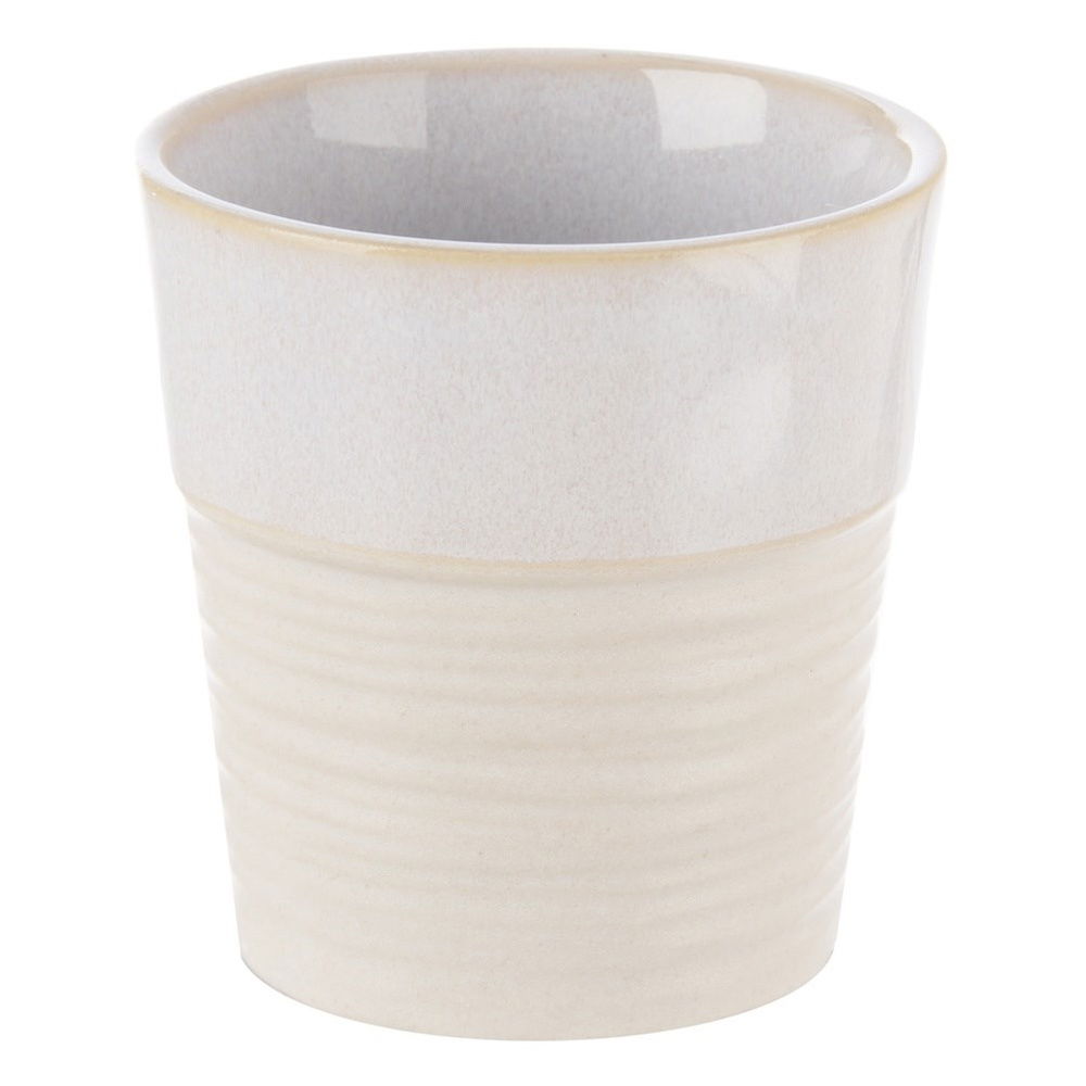 Wykonany z kamionki - Kubek wykonany z najwyższej jakości kamionki w kolorze beżowym. Posiada efektowne przetłoczenia w dolnej części kubka.
