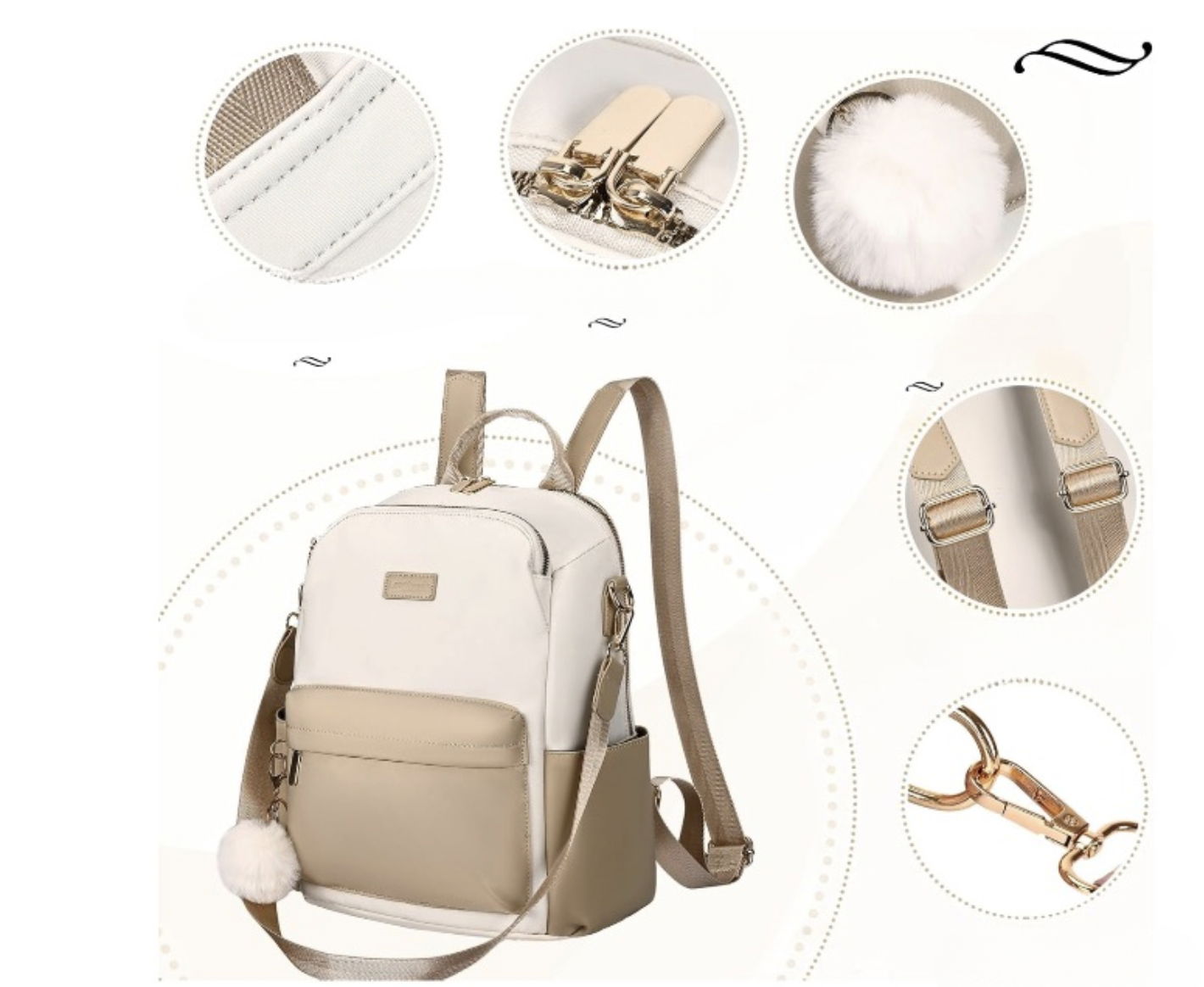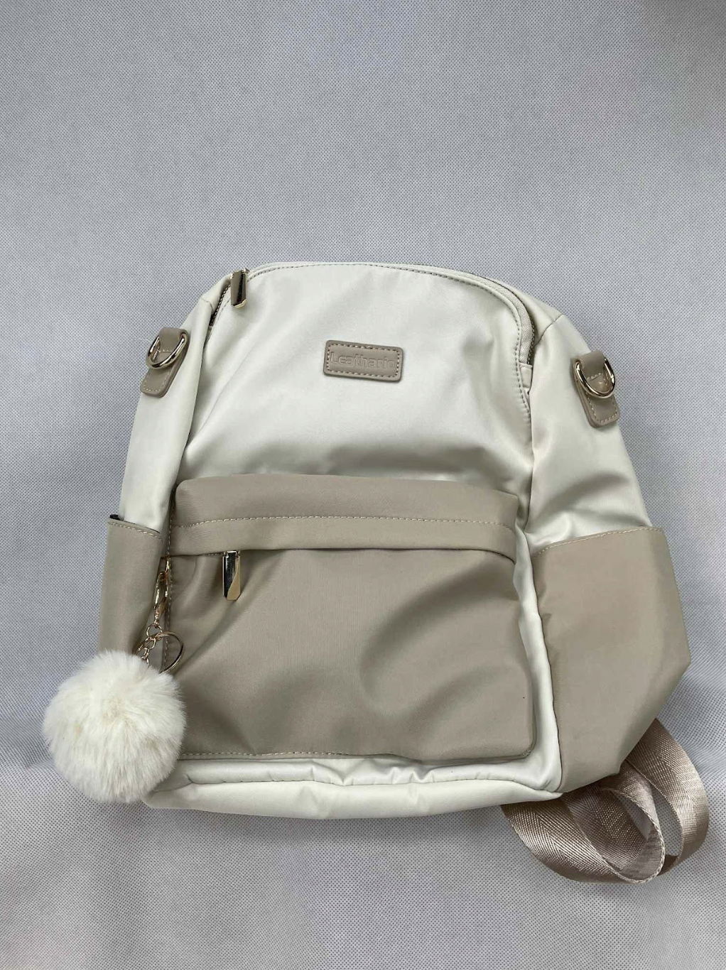 Mały plecak damski miejski elegancki Leathario beżowy wodoodporny 33x28x14