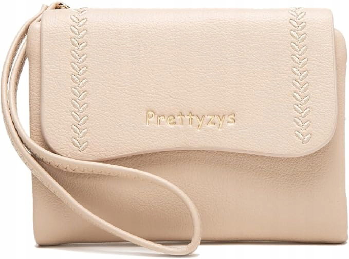Mały portfel z haftem z kieszenią i paskiem na rękę dla kobiet suwak moreli