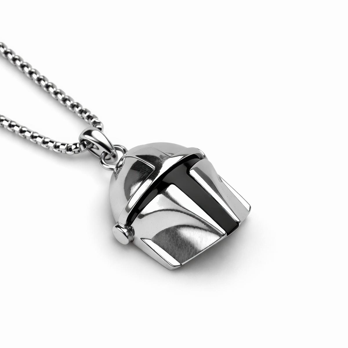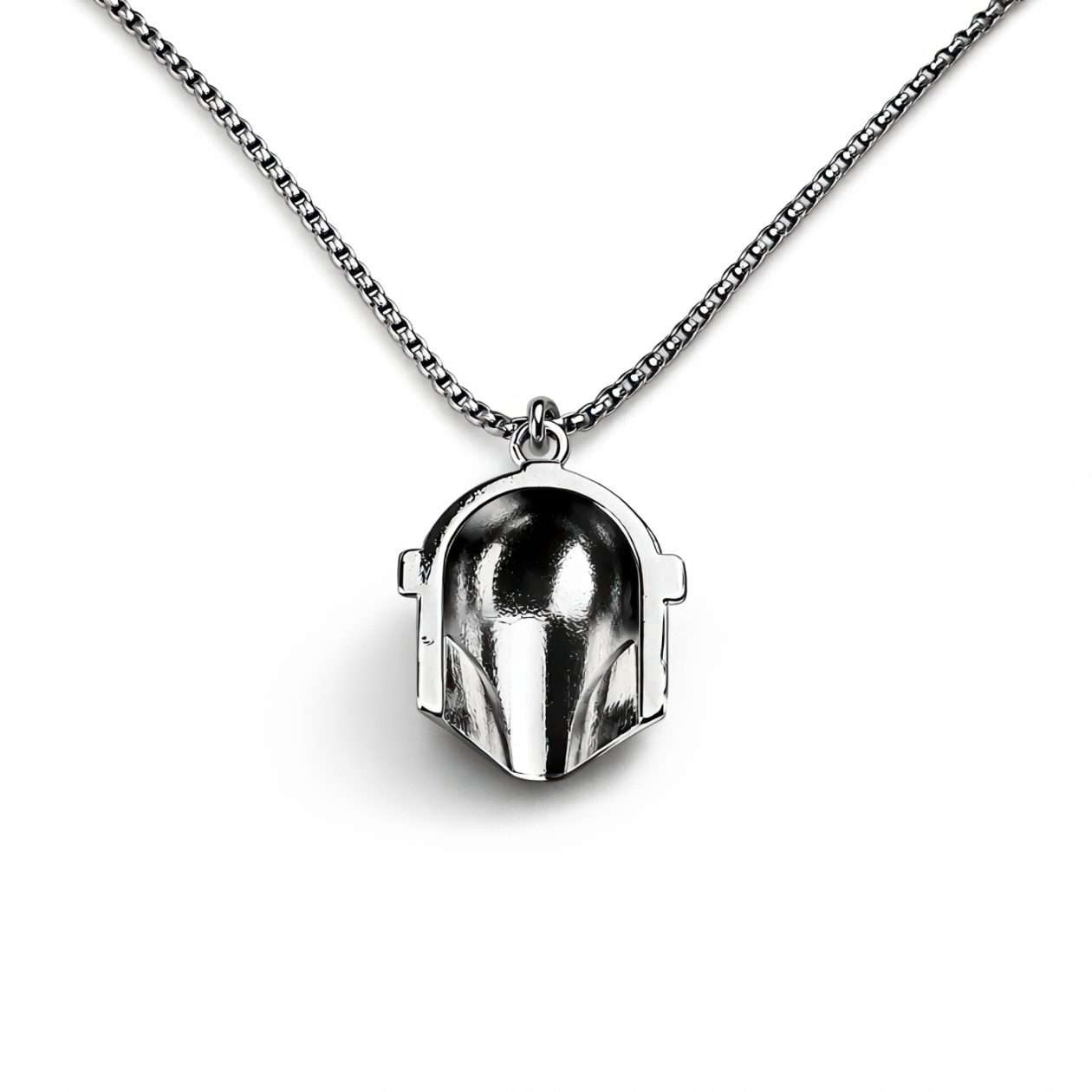 Od neonowych zaułków Coruscant po wiatry i piach Tatooine, Mandalorianin stał się symbolem uporu, lojalności i tego charakterystycznego “this is the way” — a ten wisiorek Mandalorian pozwala mieć ten klimat zawsze przy sobie. Przy wyrazistym rozmiarze 5 cm od razu rozpoznasz sylwetkę hełmu: błyszczące, lustrzane srebro i mocno zaznaczony, ciemny wizjer w kształcie litery T nadają mu ikoniczny charakter, jak pancerz znany z ekranu. Wykonany z metalu, sprawia wrażenie solidnego i „premium”, a jednocześnie wygląda bardzo czysto i elegancko w świetle. Wypukłe przetłoczenia i ostre linie paneli dodają głębi, a gładka kopuła i wyraźne krawędzie świetnie grają zarówno z codzienną stylówką, jak i delikatnym cosplayowym akcentem. Wisiorek jest zawieszony na pasującym łańcuszku z porządną krawatką, więc nadaje się do noszenia na co dzień, do ekspozycji w kolekcji albo na prezent dla fana. Jeśli kompletujesz swój „kit” albo po prostu chcesz mocny detal ze świata Star Wars — to jest gotowy, żeby dołączyć do Twojej kolekcji.