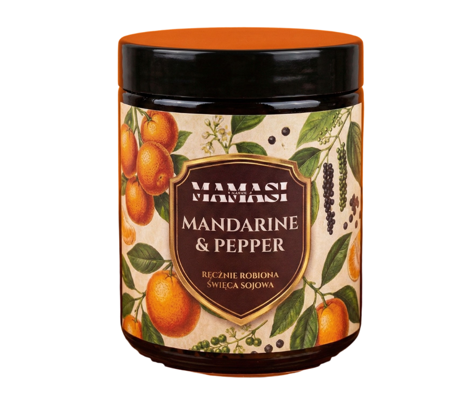 Ręcznie Robiona Świeca Sojowa Mamasi "Mandarine & Pepper" – Cytrusowa Energia z Nutą Pikantności (180ml)