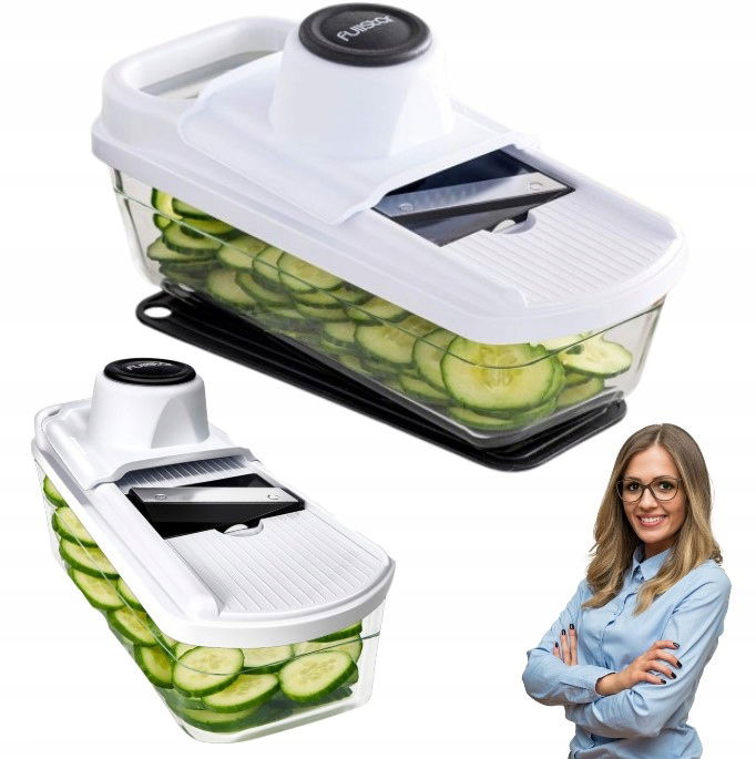 Mandolina do krojenia warzyw 5w1 to wielofunkcyjne narzędzie kuchenne, które znacznie przyspieszy i ułatwi codzienne przygotowanie posiłków. Wyposażona w 6 wymiennych ostrzy ze stali nierdzewnej oraz koszyk odpływowy, umożliwia szybkie i bezpieczne krojenie, szatkowanie i tarcie różnych składników. W zestawie znajdują się także akcesoria ochronne, które zapewniają bezpieczeństwo użytkowania. Kompaktowa, stabilna i łatwa w czyszczeniu – niezastąpiona w każdej kuchni.