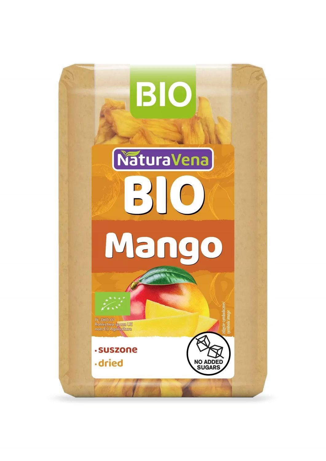 Ekologiczne mango suszone to owoc tropikalny, który charakteryzuje się wyjątkowym aromatem. To zarówno pożywna przekąska, jak również świetny dodatek do różnych potraw np. do porannej owsianki lub innych kasz, kompotów, deserów, sałatek, ciast, powideł oraz do nadziewania mięs.