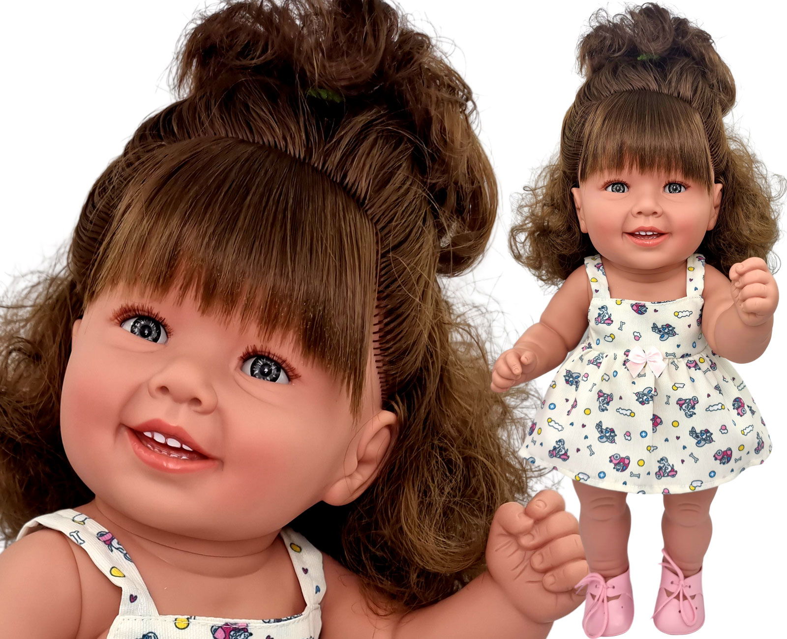 MANOLO HISZPAŃSKA LALKA DIANA 47cm 5295 Brunetka kręcone BIAŁA SUKIENKA NEW