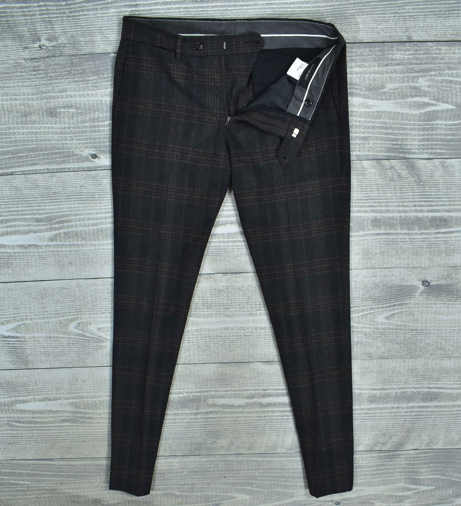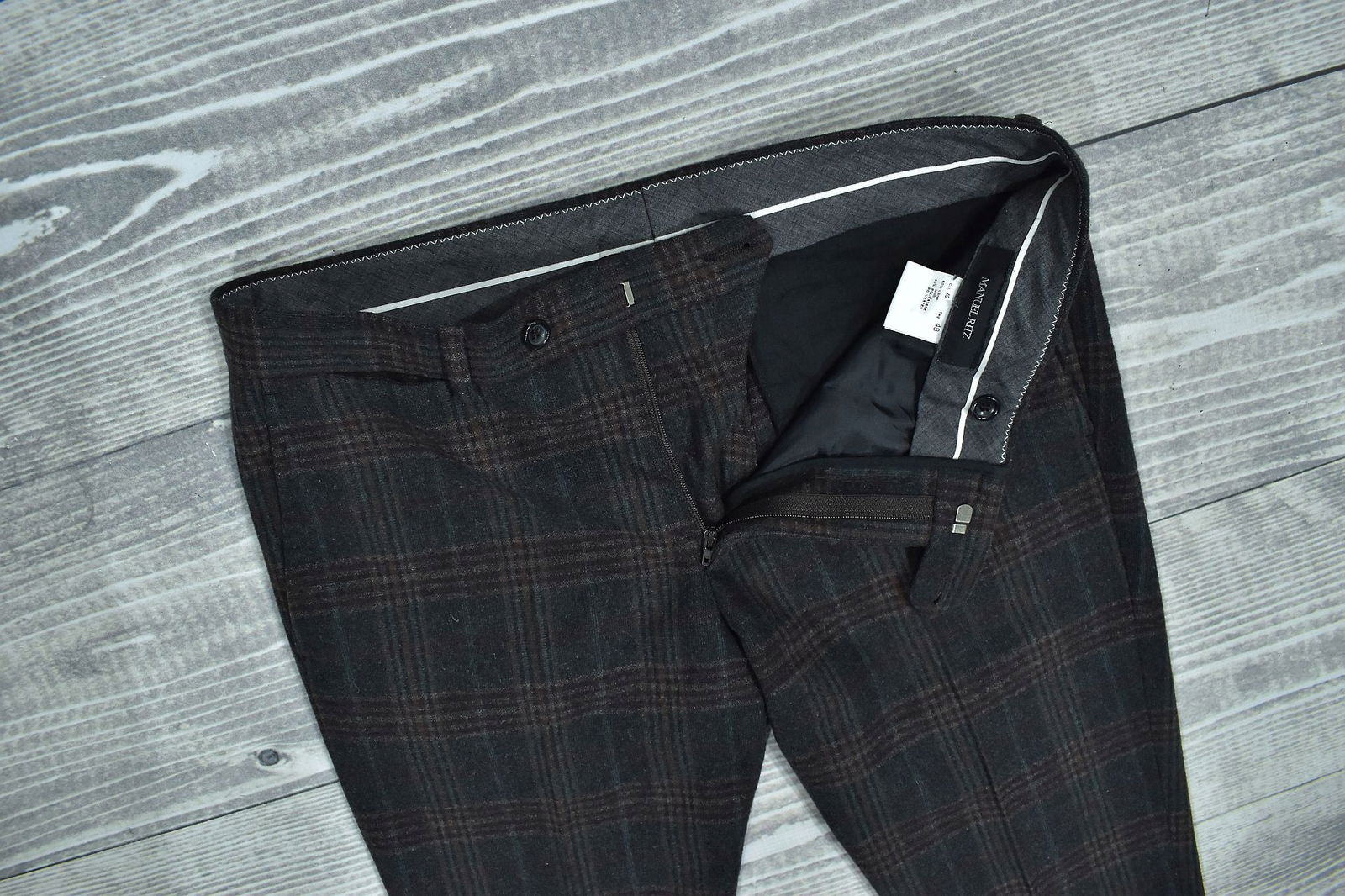 MANUEL RITZ Wełniane Spodnie Męskie w Kratkę 48