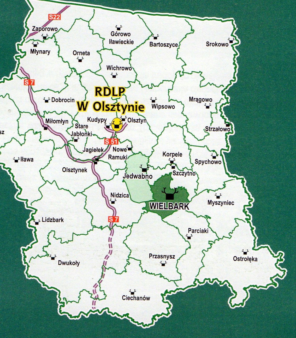 Wielbark to niewielka miejscowość położona na południe od Szczytna. Bogactwo tutejszych lasów ukazuje już sama okładka tej mapy:) Poza darami runa leśnego tereny te oferują jeszcze wiele innych ciekawych miejsc godnych odwiedzenia i zgłębienia swoich tajemnic. Przed II w. św. okolice te leżały na pograniczu polsko-niemieckim - wciąż zobaczyć możemy tutaj pozostałości po dawnej granicy, czy tez zrekonstruowany dawny posterunek graniczny. Rzeka Omulew dostarcza niezapomnianych wrażeń kajakarzom, są też przygotowane szlaki rowerowe, czy szlak Nordic Walking. Przepastne lasy zapewniają spokój i odpoczynek na trasie - jest pięknie...Polecamy oczywiście też lekturę strony opisowej, która w przyjazny i ciekawy sposób zaznajomi nas z historią, przyrodą, turystyką oraz miejscami wartymi odwiedzenia na terenie Nadleśnictwa Wielbark. Fragmenty tekstu przybliżają też zagadnienia gospodarki leśnej i zasad korzystania z lasu m. in. tak aby już nigdy więcej nie można było spotkać śmieci w lesie... Mapa ta, bawi, uczy, wychowuje oraz ukazuje piękno wielbarskich borów.