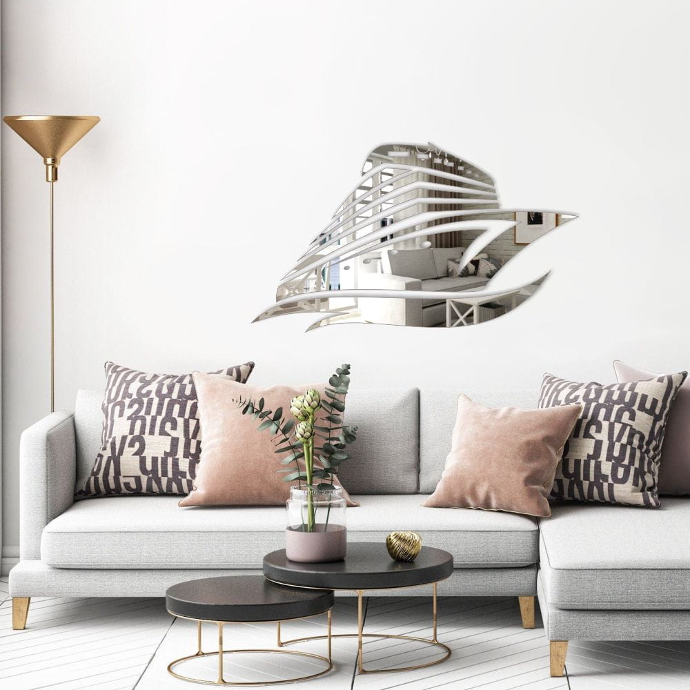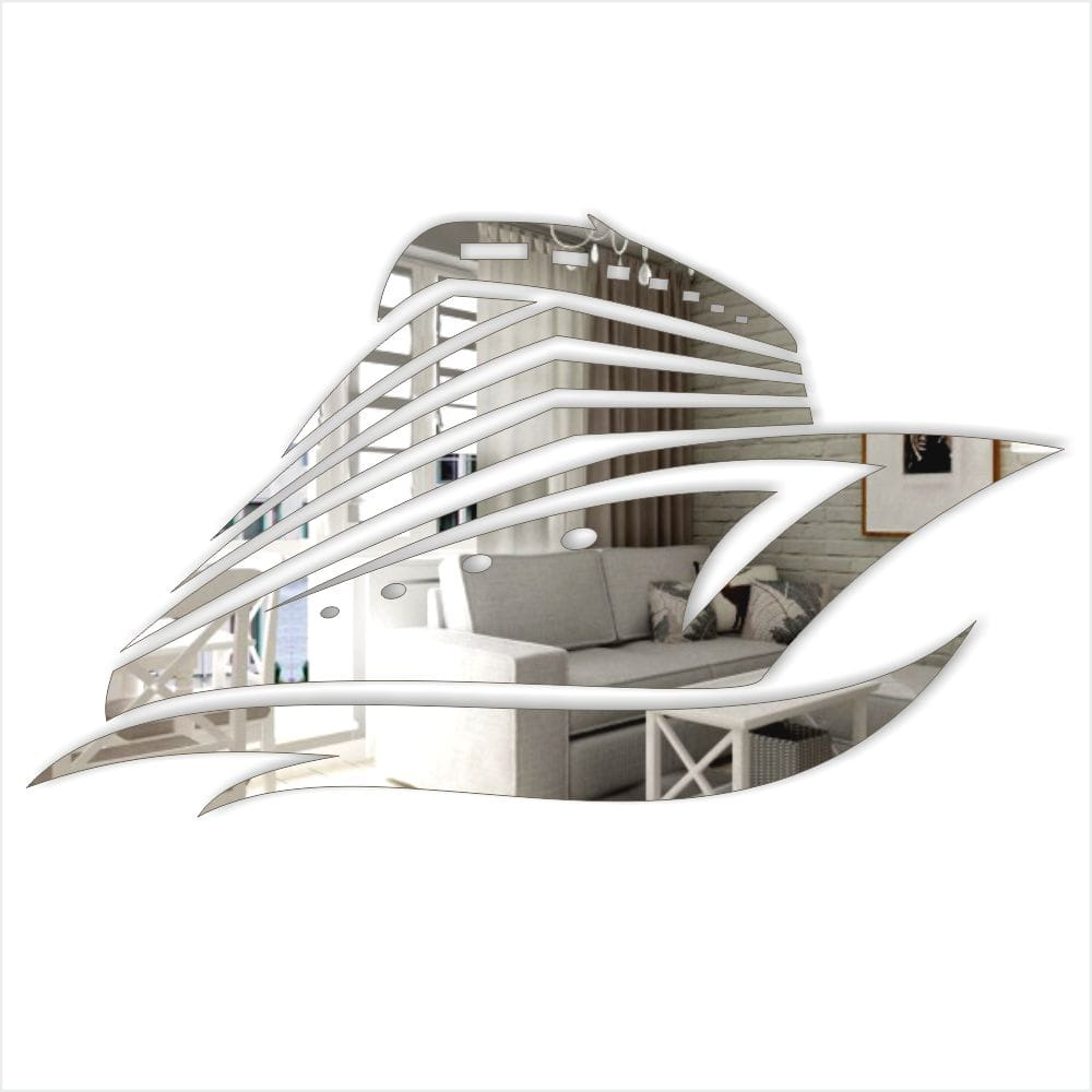 Marina Lustrzana to designerskie lustro akrylowe w kształcie statku — elegancka, lekkka i efektowna dekoracja ścienna, która doda wnętrzu morskiego charakteru i optycznie powiększy przestrzeń.