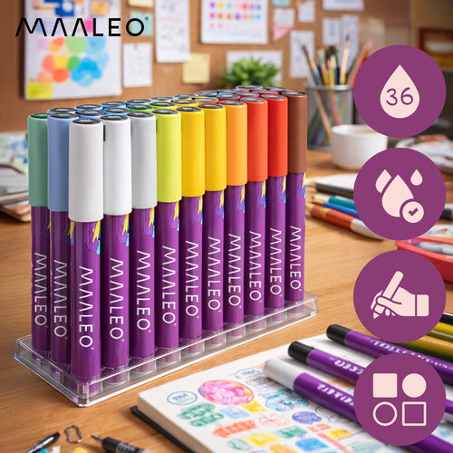 Markery akrylowe Maaleo 36 kolorów – wodoodporne pisaki i mazaki do szkła, tkanin, papieru i dekoracji DIY