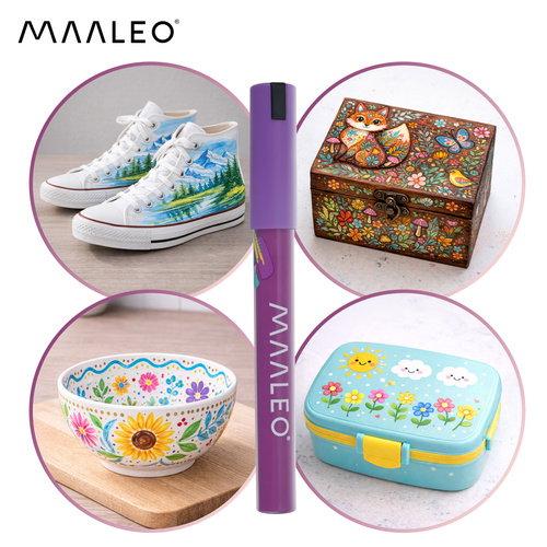 - Uniwersalne zastosowanie – markery Maaleo malują na papierze, drewnie, szkle, ceramice, tkaninach, metalu i kamieniu, dzięki czemu są idealne do DIY, personalizacji prezentów i dekoracji (sprawdzone na 7 typach powierzchni).