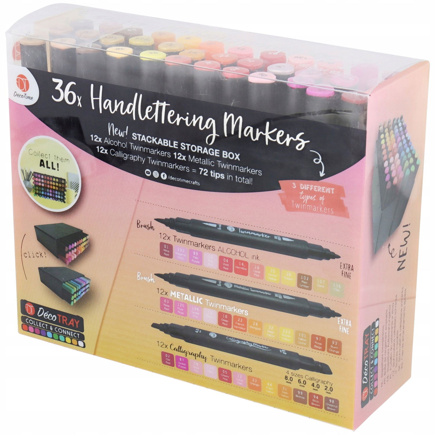 MARKERY METALICZNE KALIGRAFIA PODWÓJNE PISAKI 36 sztuk Żółć Brąz Fiolet Róż