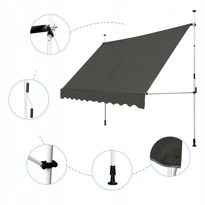 Dzięki teleskopowej konstrukcji z regulacją od 200 do 300 cm łatwo dopasujesz markizę do swoich potrzeb – bez wiercenia i bez problemu z montażem.