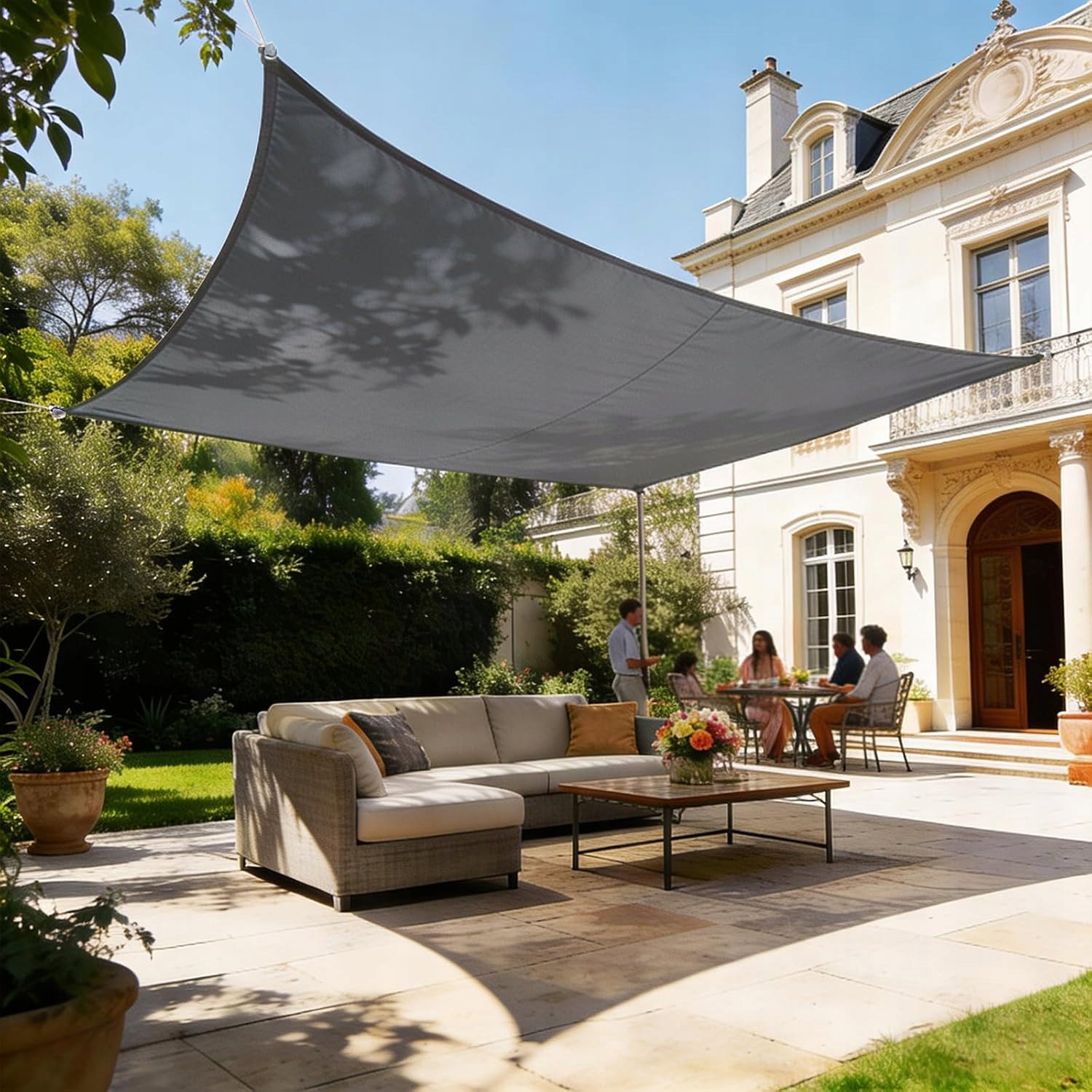- Zastosowanie: żagiel przeciwsłoneczny doskonale sprawdza się w przestrzeniach zewnętrznych, takich jak taras, ogród, patio, balkon, basen, kemping czy miejsce parkingowe. Tworzy przyjemny cień i pomaga ograniczyć nagrzewanie powierzchni znajdujących się pod nim. Dzięki uniwersalnemu designowi można go zamontować pomiędzy ścianami budynku, słupami lub innymi stabilnymi punktami mocowania.