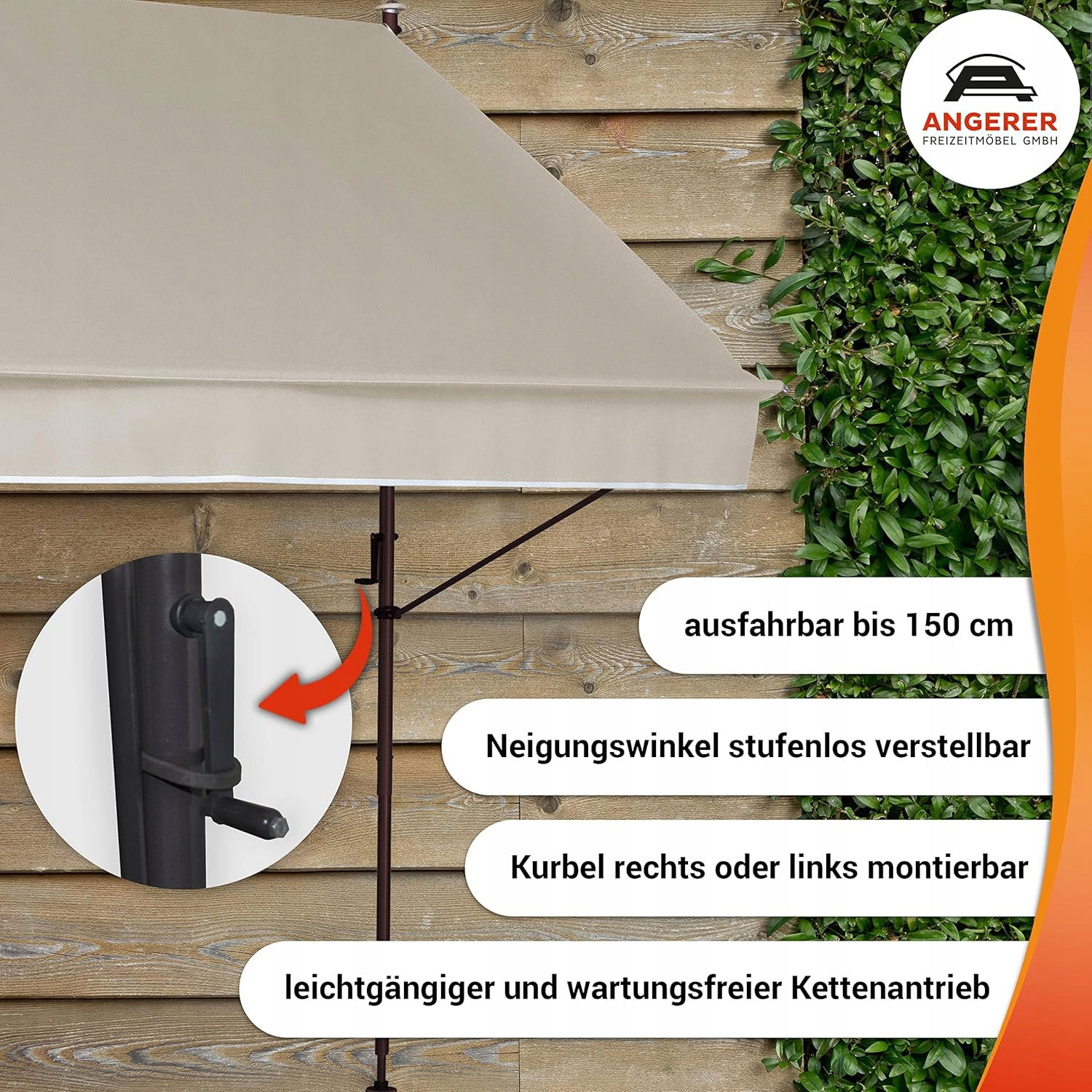 - Praktyczne funkcje: nasza markiza posiada płynnie działający i bezobsługowy napęd łańcuchowy. Korbę można zamontować z prawej lub lewej strony, podczas gdy wysokość montażu jest regulowana bezstopniowo.