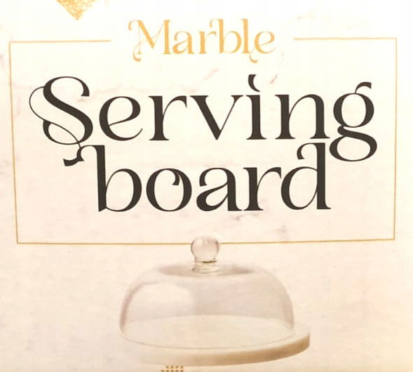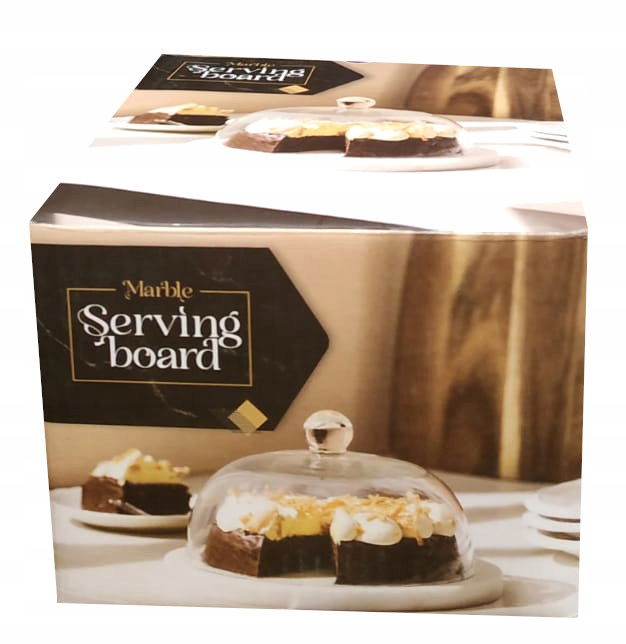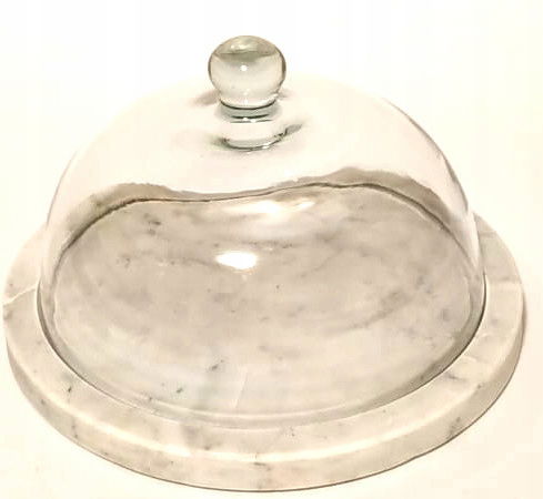 Marmurowa Deska Patera do serwowania deserów + szklana kopuła klosz 19x11cm